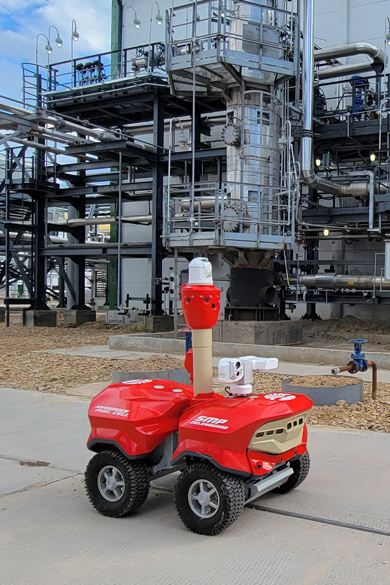 Мобильный робот Т7 «Обходчик» для химических предприятий от компании СМП Роботикс позволяет проводить дистанционную визуальную, тепловизионную, акустическую диагностику оборудования, размещенного на открытых площадках. Наблюдать за технологическими процессами из диспетчерской, осуществлять видеозапись осмотров, без необходимости нахождения специалиста в непосредственной близости от оборудования. На мачте робота установлена PTZ-камера c двумя оптоэлектронными модулями видимого и инфракрасного спектра. Высокая проходимость робота в сочетании с использованием низкотемпературных аккумуляторных батарей большой емкости позволяют роботу надежно перемещаться в условиях заснеженных и гравийных дорог. В комплект поставки робота входит автоматическая зарядная станция и укрытие для защиты мобильного робота во время стоянки и зарядки.