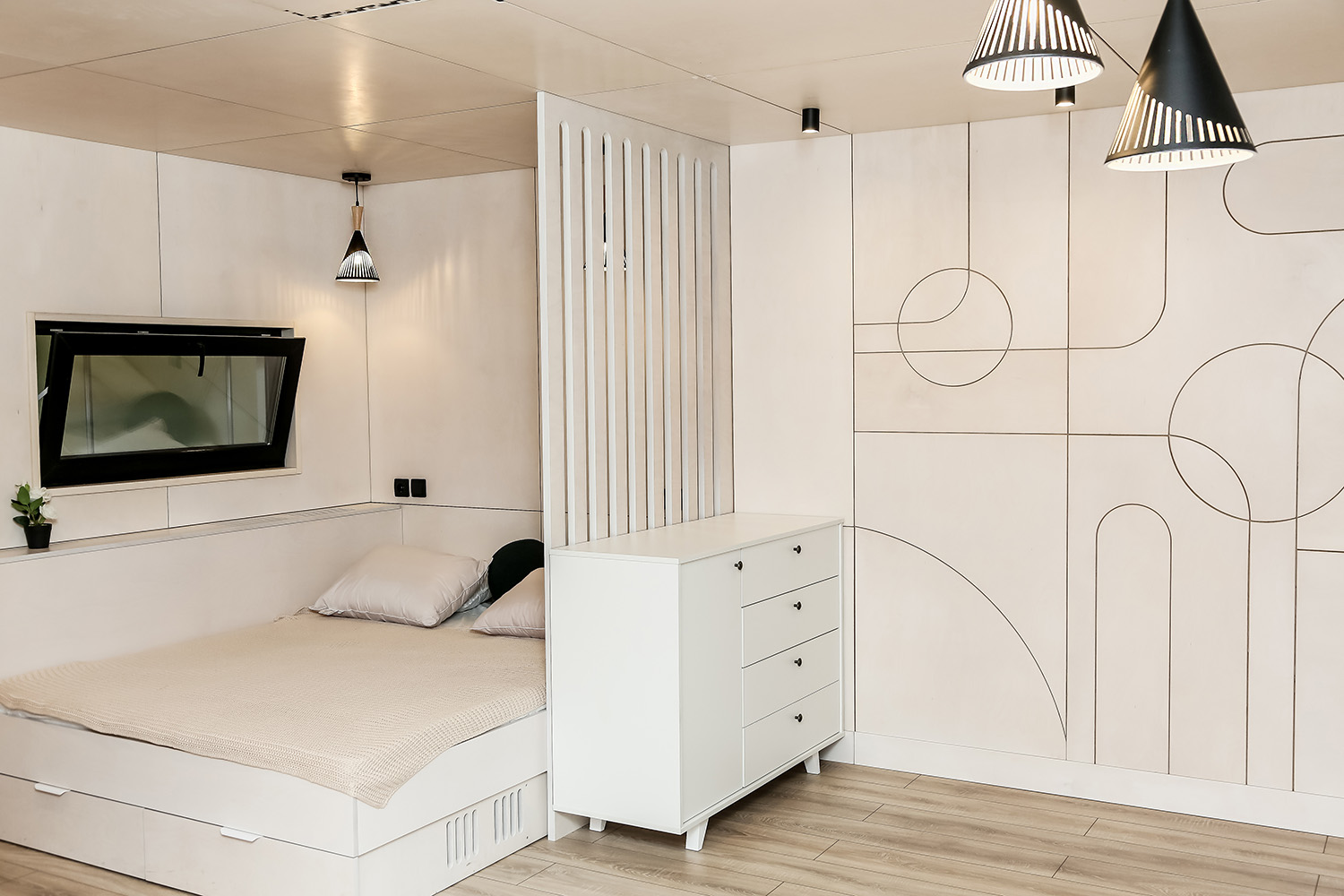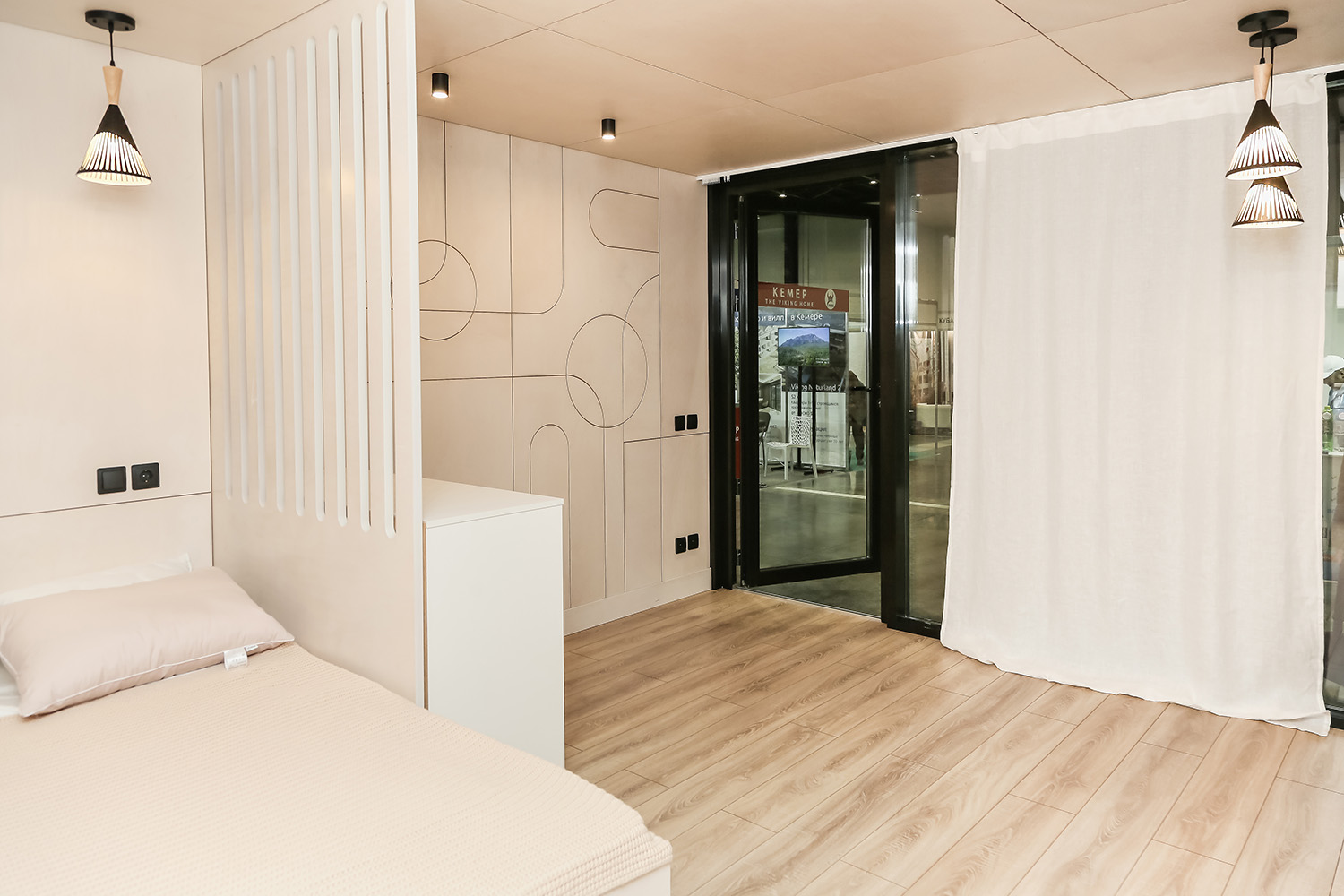 Срок изготовления дома с коммуникациями, электрикой, освещением, отоплением, сантехникой, внутренней современной отделкой — 12 дней.
