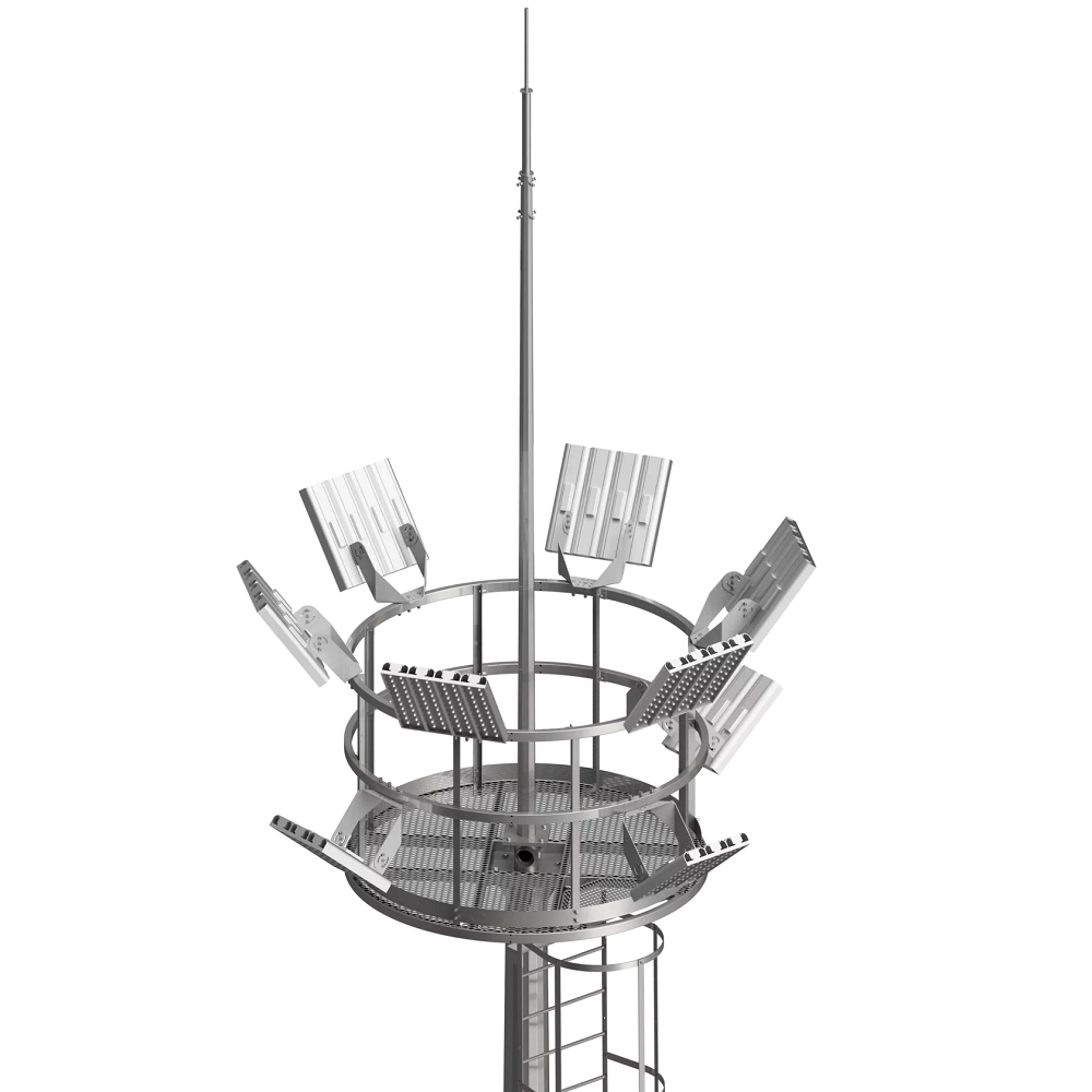 - Присутствует площадка обслуживания прожекторов различной конфигурации высоты установки.