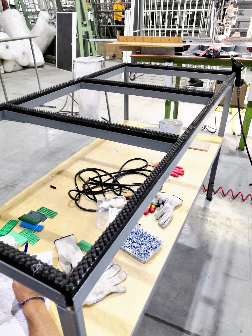 Мы выпускаем специальные версии щеточного профиля для использования в качестве плинтуса легкого скольжения на столах для сборки окон, фурнитурных станциях, столах для обработки стекла и других листовых материалов с чувствительной поверхностью.