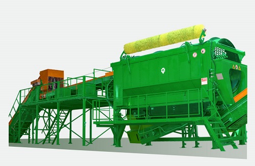 Комплекс оснащен барабанным грохотом RMZ TR-4500 для отсева мелкой, преимущественно биогенной фракции (ячейка 70-80 мм, диаметр сита 2300 мм, длина от 4500 мм). Вывод отсева осуществляется через конвейер, расположенный под всей длинной грохота, далее на отводящий конвейер с возможностью установки магнитного сепаратора (опция) на последнем сегменте. На время смены открытого контейнера предусмотрена реверсивная подача в другой, рядом стоящий контейнер.
