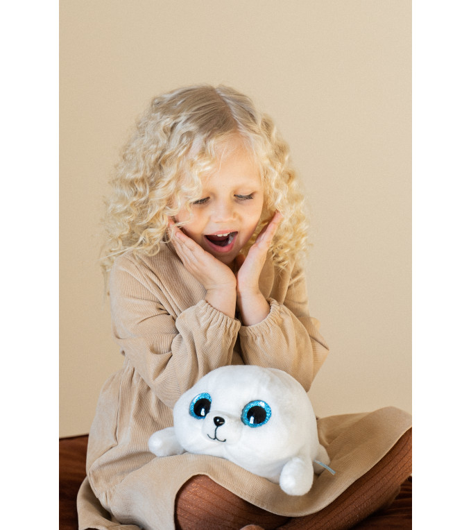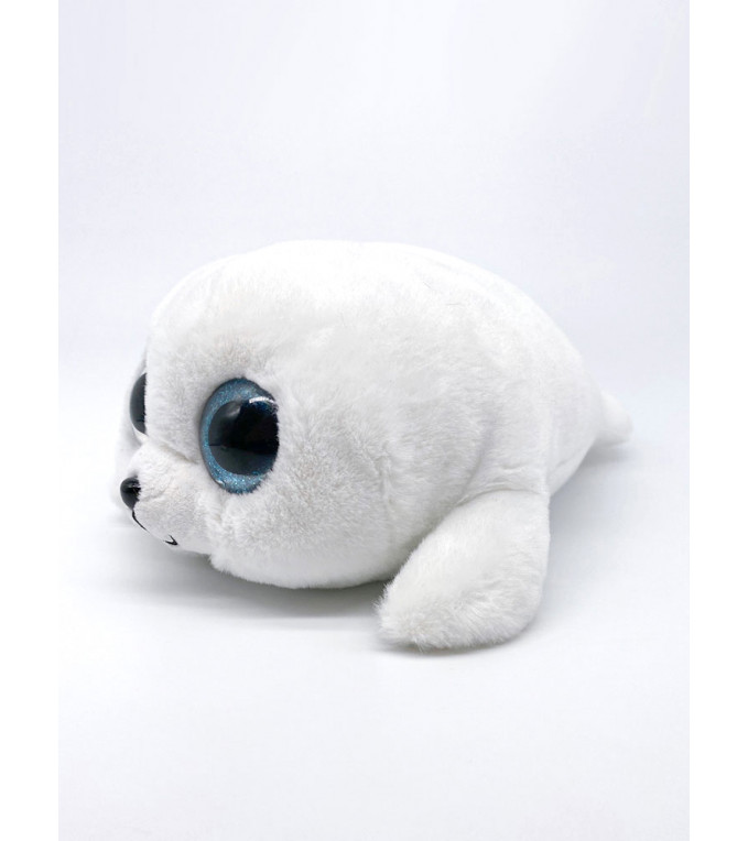 Огромные голубые глаза и маленькая мордочка отличительные черты этой игрушки. Создается впечатление, что это именно маленький нерпенок. Голубоглазка улыбчива, упитана и имеет маленькие лапки совсем как настоящие щенки нерпы