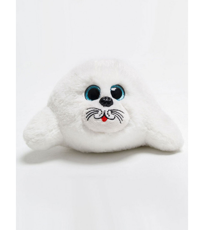 Игрушка Маша интересна в первую очередь своей мордочкой. На ней вышиты усы, щечки и открытая улыбка придает ей улыбчивый вид и добрый нрав. Голубые глаза, велюровый нос и четкая вышивка мордочки - наша нерпа будто из сказки.