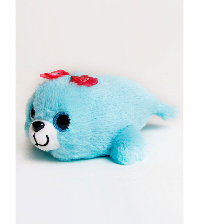 Полностью соответствует своему имени - пушистая, яркая игрушка с цветным бантом на голове. Большие голубые глаза и велюровый нос контрастируют с белой улыбчивой мордочкой. За счет нестандартного для нерпы окраса имеет мультяшный вид, это привлекает внимание детской аудитории.