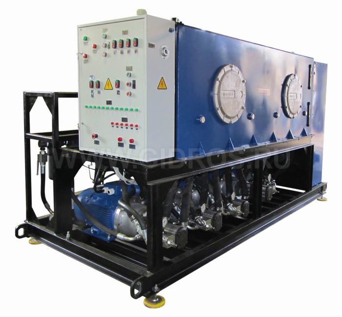 Насосные установки для промывки труб например НУЭР3-600А600Т4, НУЭЭ3-1000К20000Т4 предназначены для промывки трубопроводов систем гидропривода потоком гидравлической жидкости. Установка, как правило, включает в себя систему насосных агрегатов с электроприводом, систему фильтров, пробоотборники, гидробак большого объема, элементы контроля и сопутствующую гидроаппаратуру.
