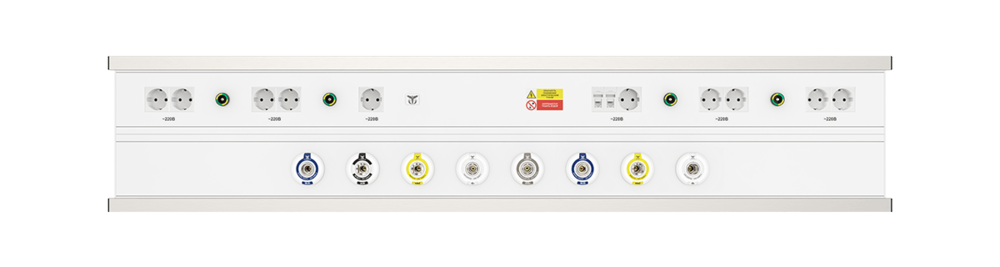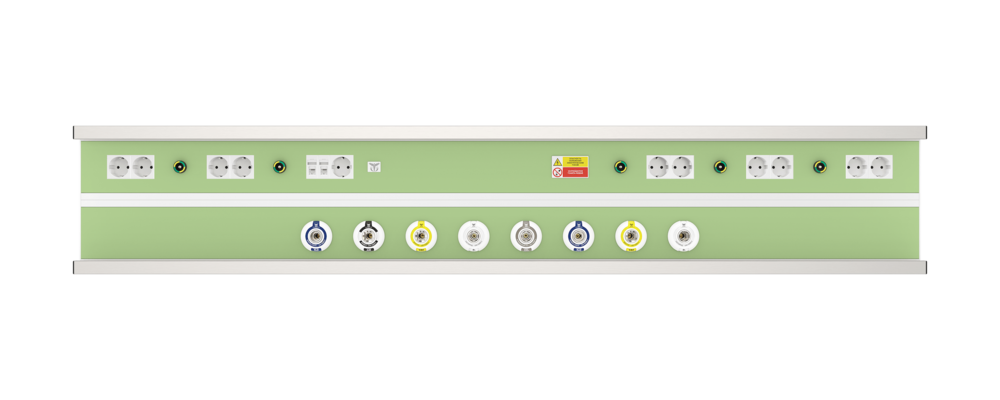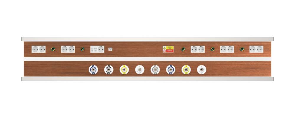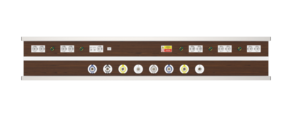 Настенные консоли CADUCEUS CN3-2 созданы для удобства медицинских работников и могут быть укомплектованы разъемами быстрого соединения медицинских газов в количестве до 8-ми по стандарту DIN 13260-2 (кислорода, вакуума, сжатого воздуха, закиси азота и углекислого газа), электрическими розетками 220В. Оснащение коммуникационными разъемами для связи «сестра-пациент» и передачи данных, а также двумя медицинскими рельсами, позволяющими устанавливать мониторы, светильники и другие приборы, дают возможность медицинским работникам вести наблюдение за состоянием пациента.
