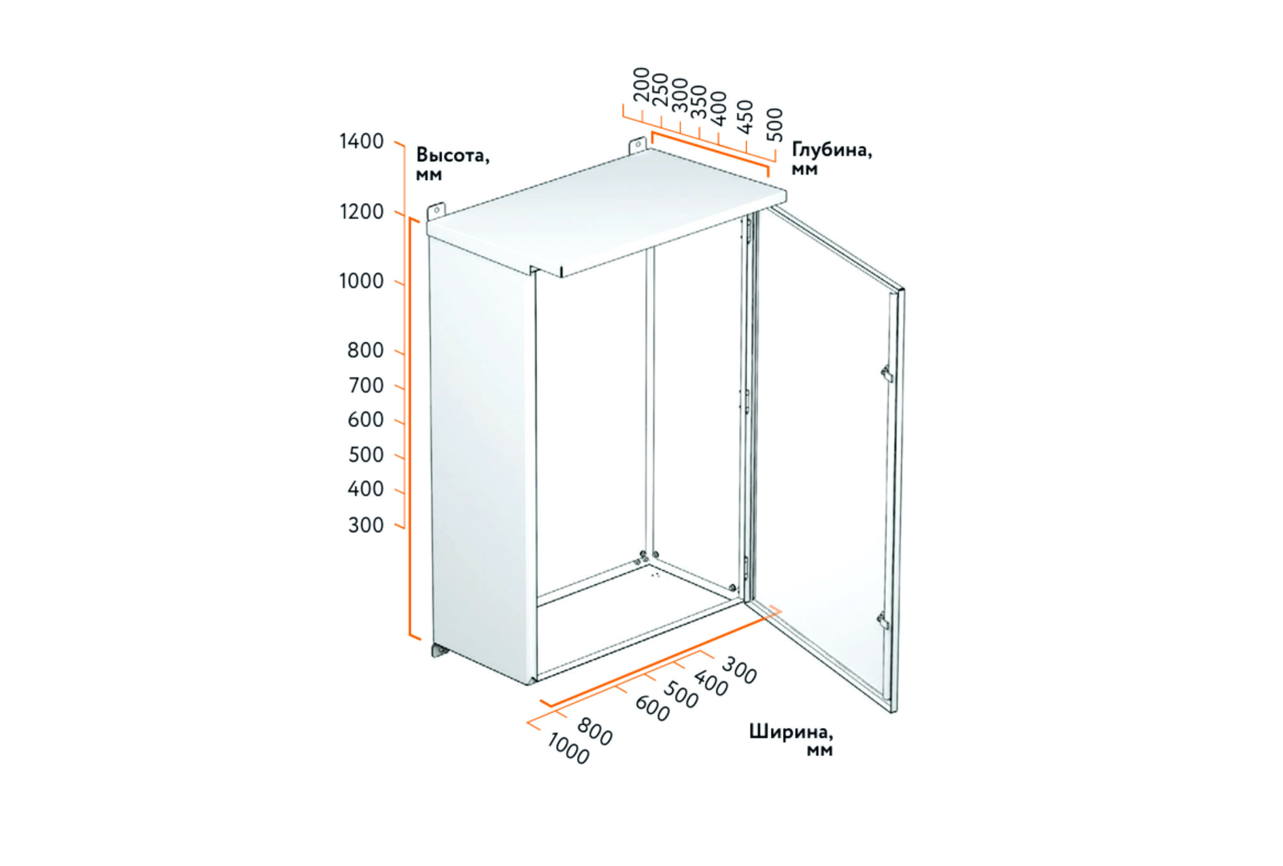 - Угол открывания двери на 90° обеспечивает удобство доступа к установленному оборудованию.