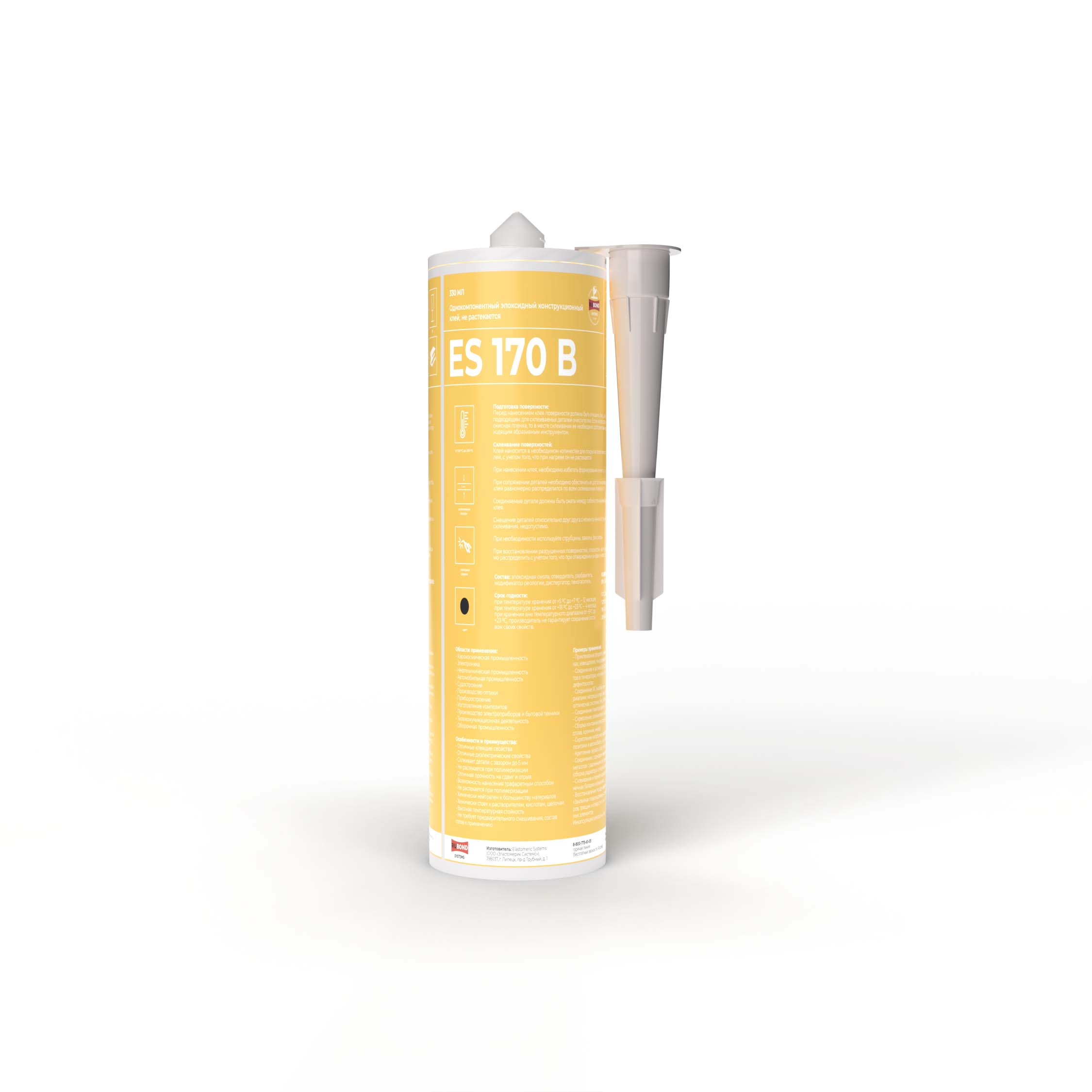 Клей оптимален к применению там, где предъявляются высокие требования к прочностным характеристикам клеевого соединения, с одновременной устойчивостью к растеканию при нагреве во время полимеризации, исключению подтеков клея.