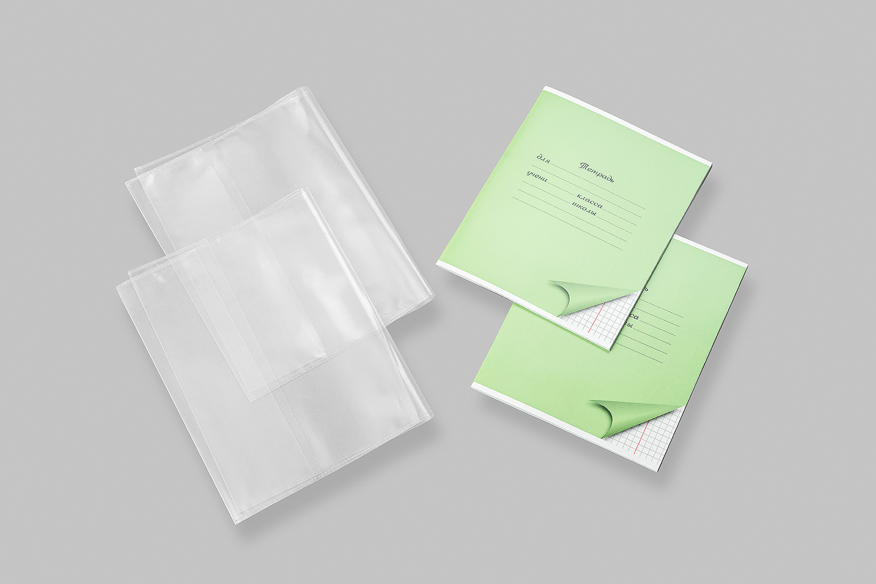 Полиприпиленовые обложки для тетрадей, размером 210*345 т.70 мкм. Упакованы в пачки по 500 шт. Минимальный тираж - 13 тыс.шт. Срок изготовления - 10-15 раб.дней.