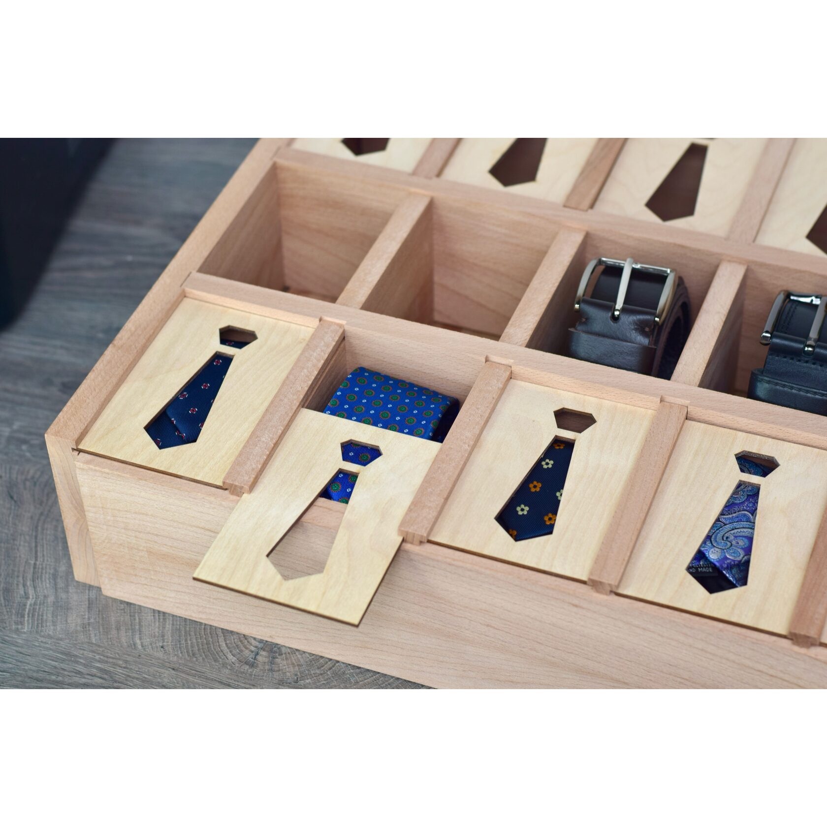 Подарите своим аксессуарам достойное место с этой деревянным органайзером для галстуков и ремней!