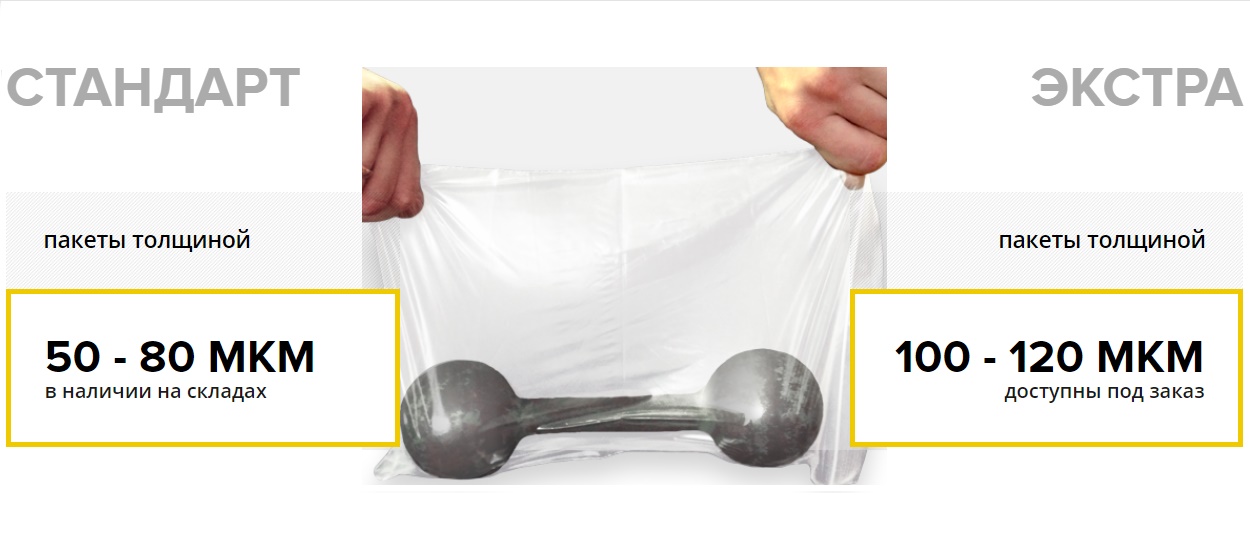 Размеры пакетов и толщина материала на выбор.