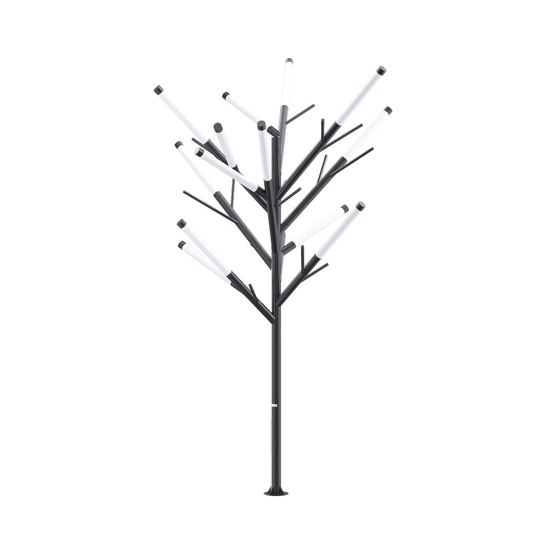 Светильник стилизован под форму дерева, такое оформление может быть полезно для создания единой концепции в ландшафтном дизайне.