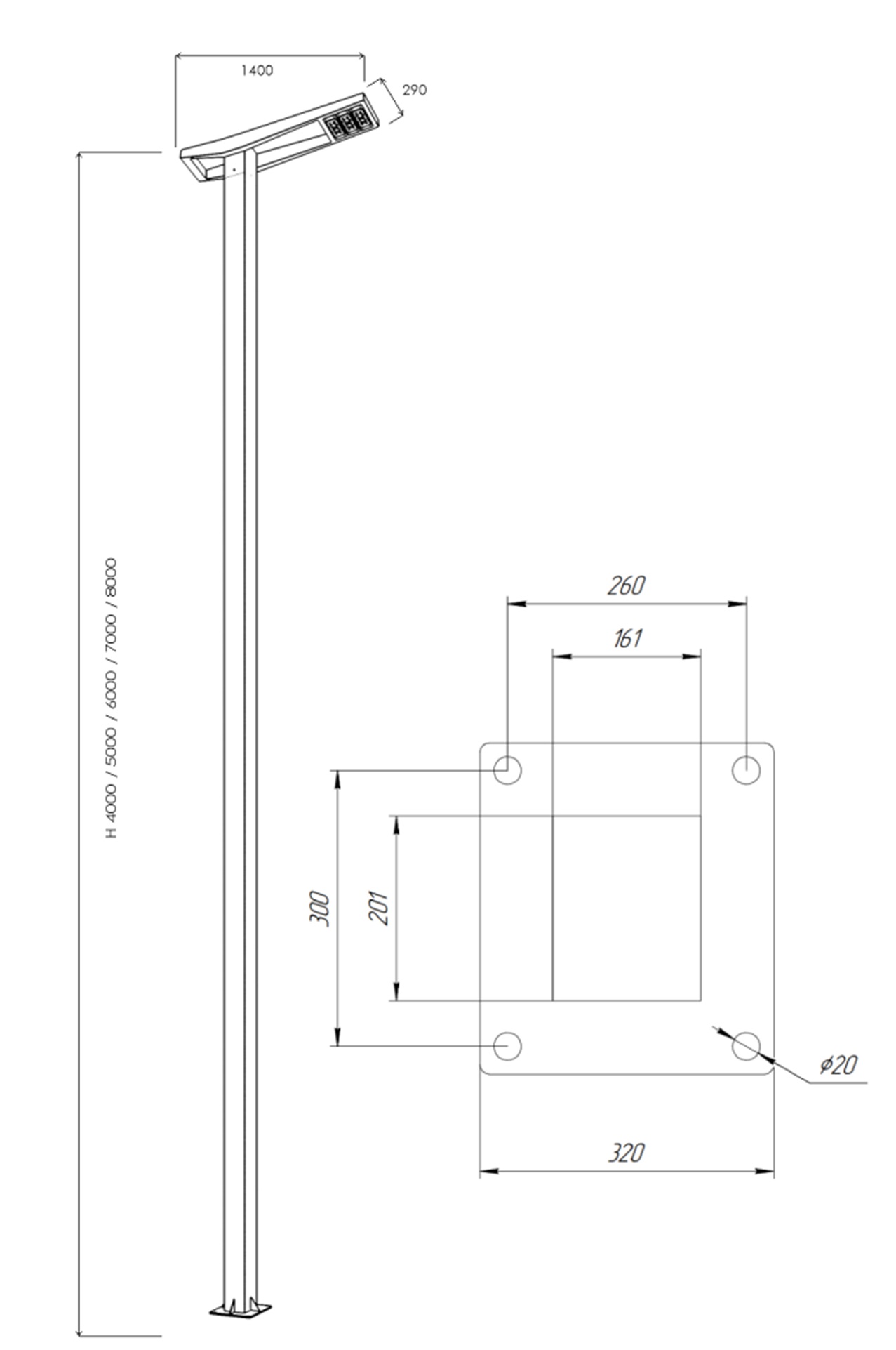 Светильник уличный SVETHOLL Киль L1400 B290 H7000 100W 14100 Lm Сталь