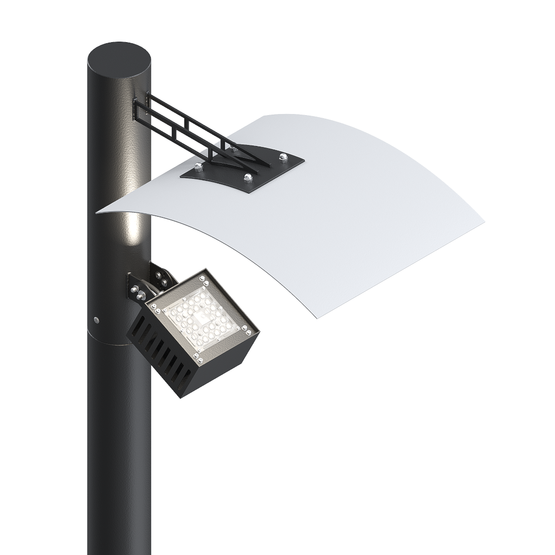 Светильник Винситоре мощностью 50 ватт на опоре 4 метра дает световое пятно размером 8,7 метра в длину и 7,5 метра в ширину от центра опоры, освещенность под опорой при этом 30-40 люкс.