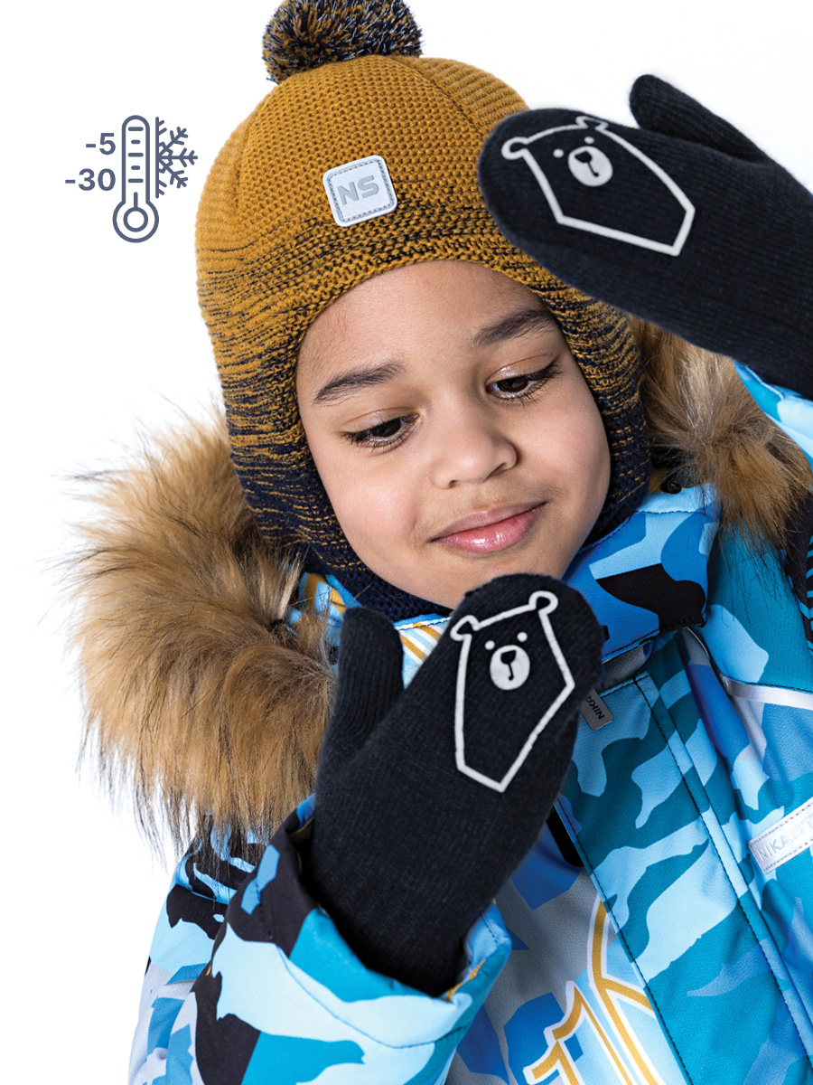 Двойные зимние варежки «Маша» из полушерстяной пряжи. Варежки на тесьме- антипотеряшке со светоотражающим принтом. Комфортная температура эксплуатации от 0С до -30С. Варежки отлично сочетаются с другими изделиями NIKASTYLE.