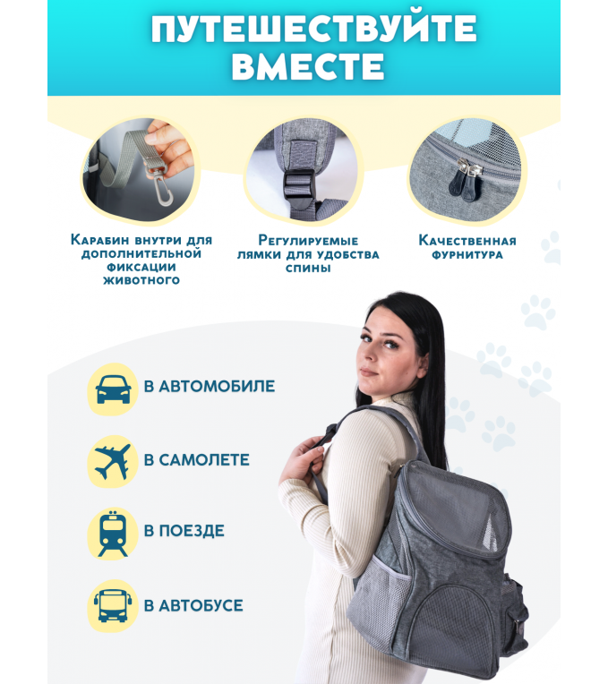 Вав-вав-вав, мяуууу, так будут встречать вас ваши любимые питомцы, если понадобится поехать в ветклинику или полететь на самолете в переноске и, с удовольствием, в нее войдут. Какую же переноску выбрать? Этим вопросом задается каждый любящий хозяин. Наши модели прошли тщательный отбор, ведь у нашей команды есть самые любимые питомцы, которых мы просто обожаем. Материал изделия – оксфорд, обладает такими как водонепроницаемость, водоотталкивающие свойства, износостойкость, грязеустойчивость, термоустойчивость, высокая прочность, простота ухода, повышенная устойчивость к истиранию. Идеальна для животных: кролик, котята, шиншилла, корги, щенки, собачки, шпиц, кот, грызуны, басик, мелкие породы собак, средние, крупные, большие породы кошек. Переноска для животных предназначена для переноски кошек и собак до 10 кг.