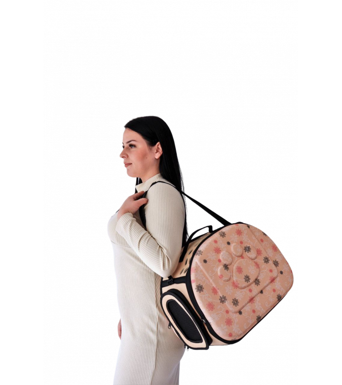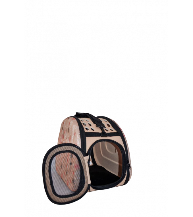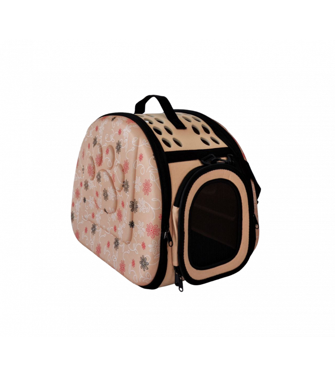Переноска для животных, жесткий каркас, с рисунком, бежевая, 5648