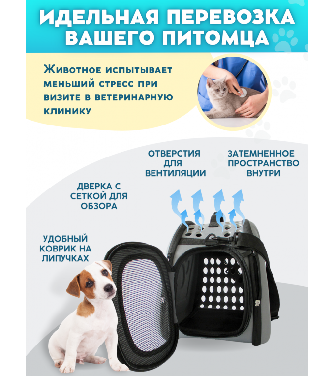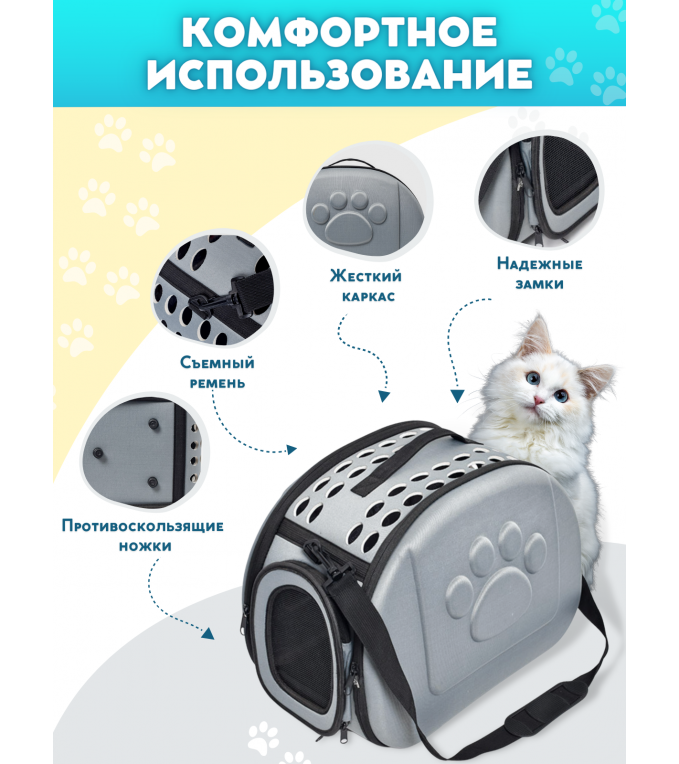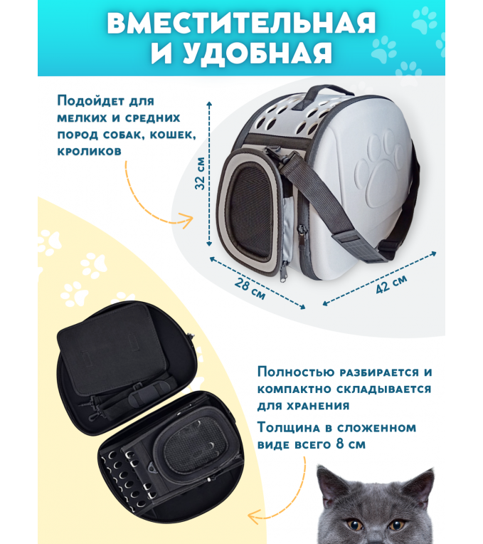 ав-вав-вав, мяуууу, так будут встречать вас ваши любимые питомцы, если понадобится поехать в ветклинику или полететь на самолете в переноске и, с удовольствием, в нее войдут. Какую же переноску выбрать? Этим вопросом задается каждый любящий хозяин. Наши модели прошли тщательный отбор, ведь у нашей команды есть самые любимые питомцы, которых мы просто обожаем. Мягкая переноска для собак – незаменимый помощник в транспортировке вашего питомца. Изделия выполнены из EVA материала, который обладает рядом преимуществ, такими как: водонепроницаемость, водоотталкивающие свойства, износостойкость, грязеустойчивость, термоустойчивость, высокая прочность, простота ухода, повышенная устойчивость к истиранию нитей. Идеальная переноска для животных: кролик, котята, шиншилла, корги, щенки, собачки, шпиц, кот, грызуны, басик, мелкие породы собак, средние, крупные, большие породы кошек. Большая переноска для самолета, кошачья переноска в сложенном виде очень компактна и не займет лишнего места дома.