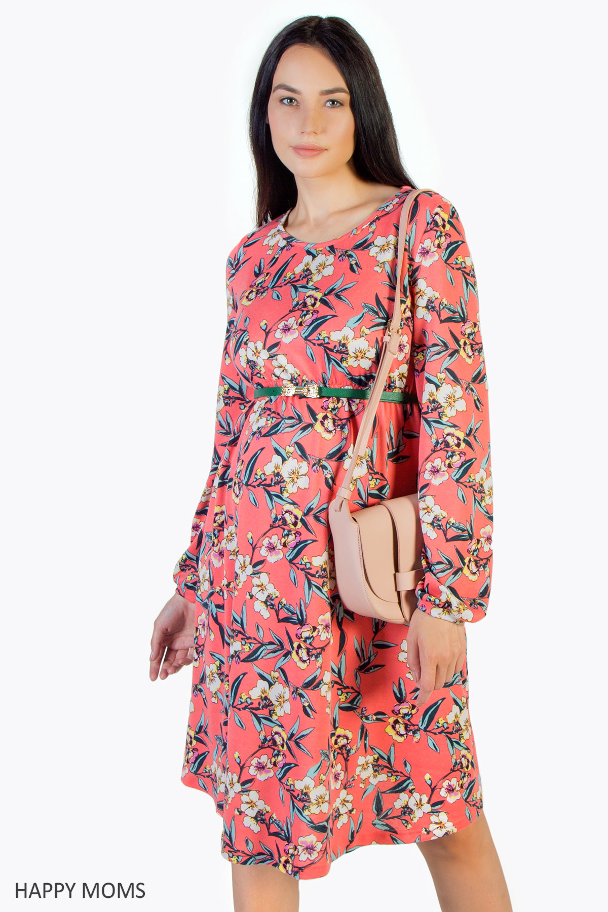 Комфортное платье для будущих мам. Модель прекрасно сочетается с обувью на низком ходу или невысокой танкетке, что добавляет будущей мамочке удобства на прогулке. За счет свободного кроя платье отлично садится на животик. Это же обстоятельство позволяет носить его после родов, модель идеально подходит для игр с малышом на свежем воздухе. Хлопок в составе ткани обеспечивает хорошую вентиляцию, а вискоза добавляет трикотажу уютной мягкости.