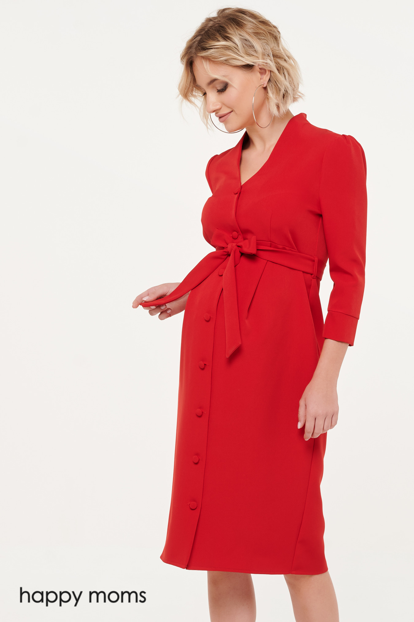 Платье элегантного прямого кроя. Детали продуманные, лаконичные, выигрышно дополняют цвет. Аккуратный v-вырез переходит в невысокую стойку, рукава три четверти визуально облегчают созданный образ. В районе талии модель фиксируется мягким тканевым поясом, планка во всю длину украшена пуговицами в тон ткани. Длина модели чуть ниже колена, это добавляет платью элегантного шика и дает ему возможность сочетаться с туфлями на любом каблуке. Это могут быть удобные балетки на низком ходу, лодочки на среднем ходу или высокие шпильки. Дополнительных аксессуаров платье не требует – оно самодостаточно в своей яркой выразительности.