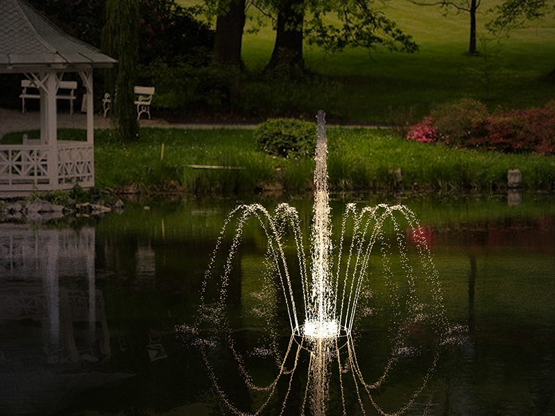 Плавающий фонтан - отличный способ украсить естественный или искусственный водоем. Плавающие фонтаны прекрасно аэрируют водоем, обогащая его кислородом, что препятствует образованию нитевидных водорослей и застаиванию воды. Конструкция плавающего фонтана позволяет размещать его в водоемах со стоячей водой или небольшим течением. Рабочий агрегат плавающего фонтана размещается на системе поплавков и надежно фиксируется к дну водоема с помощью подвижных якорей.