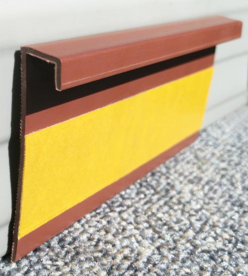 Подходит для толстого коммерческого линолеума, ковролина, толщина кромки - 7 мм. Высота: 50 мм. Имеет дополнительную клеевую полосу для удобства монтажа. Для монтажа не нужны угловые элементы - ремонт будет долговечным, внешний и внутренний угол формируем подрезкой стуслом. Может использоваться в комплекте с каннелюрным профилем для толстого коммерческого линолеума в чистых помещениях. Поставляется нарезкой по 2,7 м. Имеет сертификат пожарной безопасности Г1, КМ1 и может использоваться в общественных помещениях.