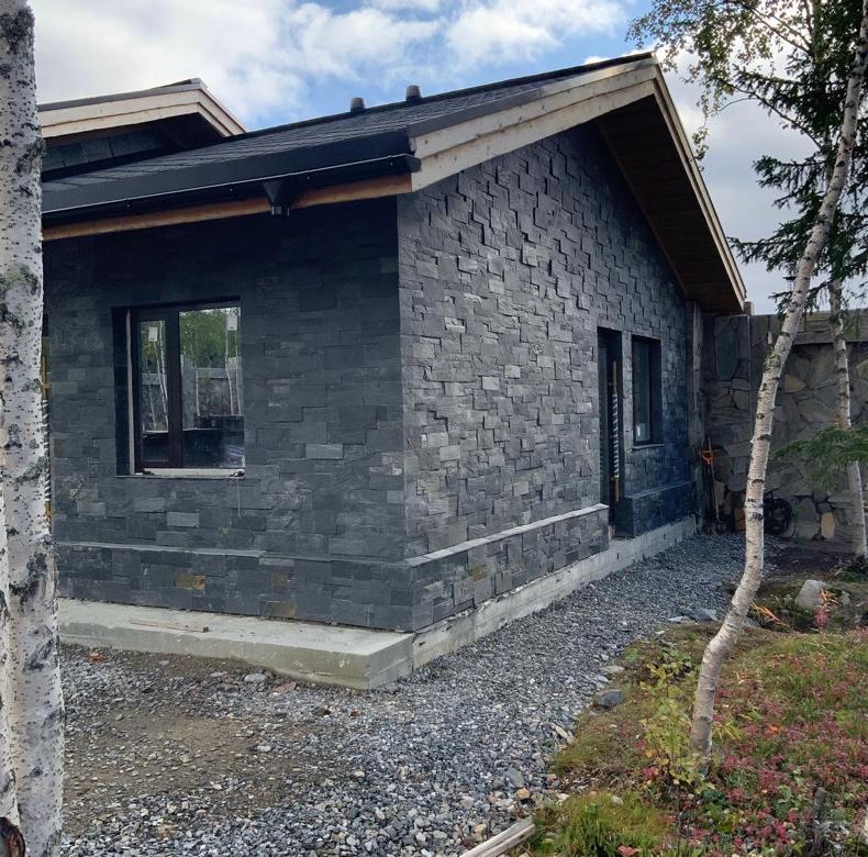 Плитка из природного сланца чёрного цвета с матовой поверхностью.