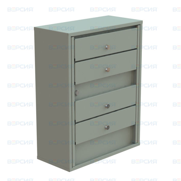 Количество ячеек для коррепонденции: 4 штуки. Дверцы почтового ящика с независимыми петлями оснащены замком Cam Lock с двумя ключами. У каждого абонента есть свой индивидуальный комплект ключей, обеспечивающий доступ только к своей ячейке.