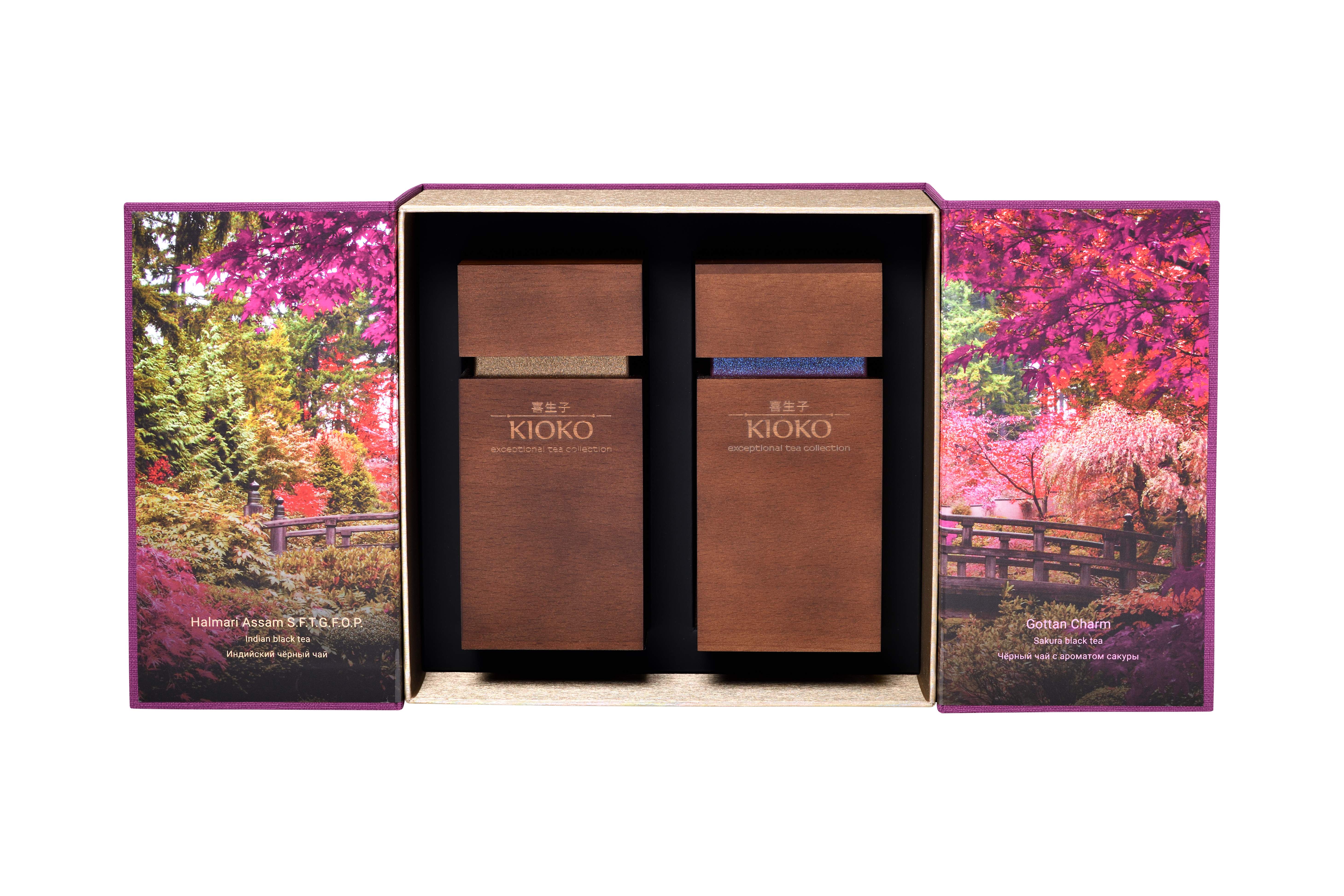 В наборе WOOD ESSENCE AMETHYST благородный черный листовой чай Ассам (плантация Халмари, Индия) высшей категории S.F.T.G.F.O.P. Он отличается большим содержанием нераспустившихся золотистых чайных почек, насыщенным настоем и терпким вкусом. Его прекрасно дополняет GOTTAN CHARM - чёрный чай с мягким ароматом спелой вишни и чарующими цветками вереска представляет собой на редкость изысканный купаж. Его слегка терпкий цветочно-фруктовый вкус обволакивает нежностью и дарит гармонию с окружающим миром. Упакован чай в уникальные тубусы из бука и большую коробку из материала под холст.