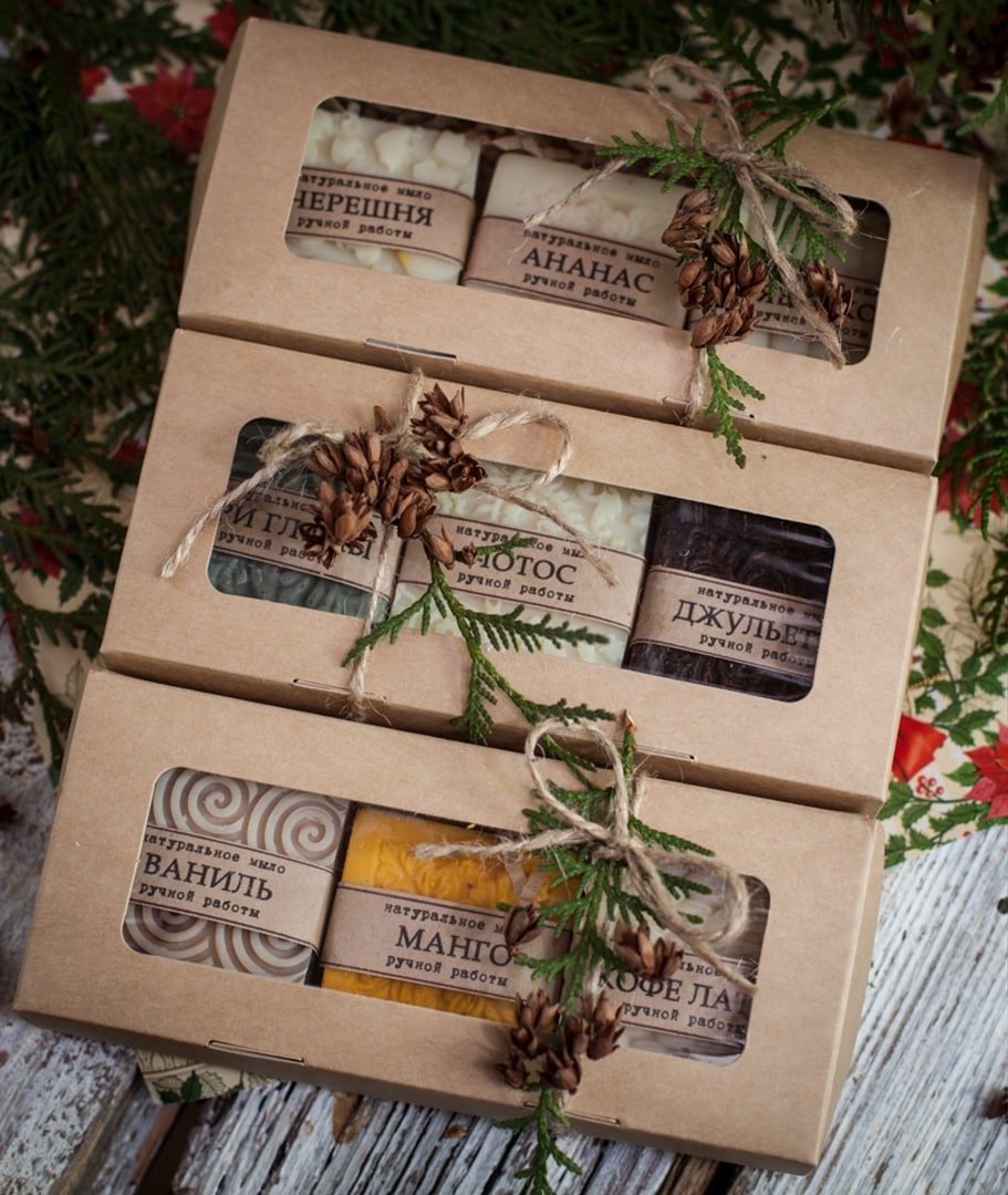 Наборы натурального мыла отличный вариант для подарка, корпоративного подарка и для пробы нескольких видов мыла. Набор упакован в крафт коробку и перевязан лентой. В наборе три разных вида мыла от SpringList. Вес каждого куска мыла в наборе 40 гр. Общий вес набора с упаковкой 150 гр.