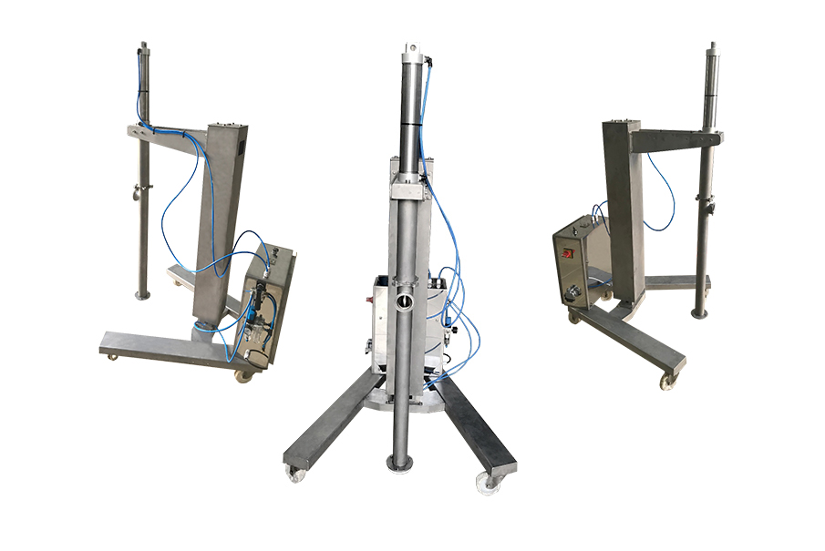 Пищевой насос выполнен в виде мобильной установки, которая может быть расположена в непосредственной близости от дозирующей установки. На раме смонтирована вертикальная телескопическая стойка, на которой консольно закреплен поршневой насос. Сам насос приводится в действие с помощью пневматического привода. Телескопическая стойка обеспечивает плавную регулировку высоты расположения насоса над дежей. Ящик управления позволяет контролировать режимы работы насоса. Предусмотрена работа насоса в двух режимах: - режим автоматической работы, установлен таймер времени работы насоса, после окончания времени насос автоматически выключается; - режим ручного управления, при котором оператор сам контролирует необходимый уровень теста в дозирующей установке. Пневматический блок управления позволяет осуществлять плавную регулировку производительности насоса и давления продукта на выходе. ПРИМЕНЕНИЕ ПИЩЕВОГО НАСОСА: - Дозирование жидкого бисквитного теста. - Подача вязких пищевых жидкостей к дозирующему оборудованию.
