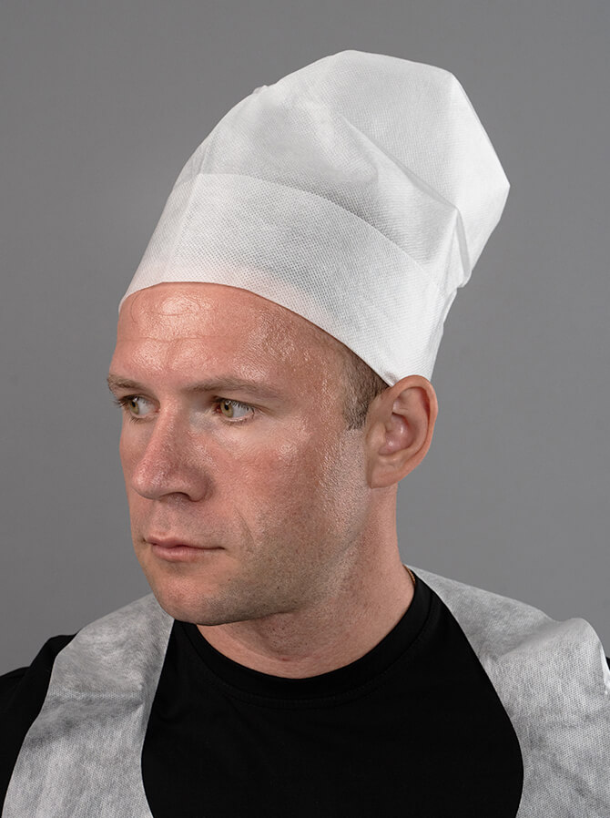 Одноразовые поварские шапочки-колпаки (белые, спанбонд 40 г/м²)