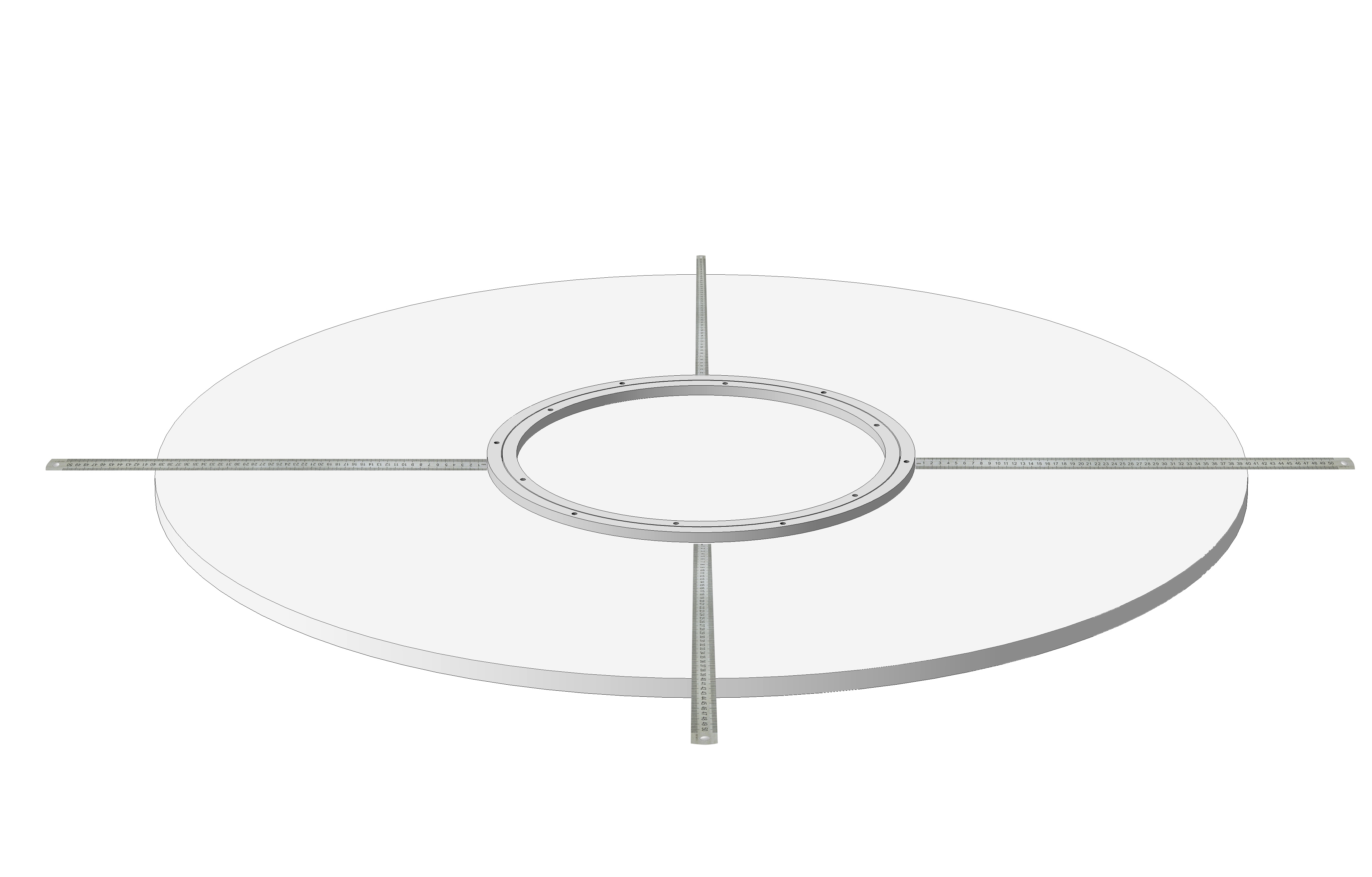 Перед сборкой нужно соблюсти центровку, чтобы потом при вращении круг не болтался из стороны в сторону. Удобный быстрый способ наметить правильное положение механизма: с помощью длинной линейки или рулетки. Просто добиться одинакового расстояния от краёв механизма до краёв поворотного круга. Затем обрисовать вокруг механизма круг карандашом или маркером. Перед сборкой вы положите механизм точно в намеченный вами круг, и наметите отверстия для крепления. Останется только просверлить и можно приступать к сборке.