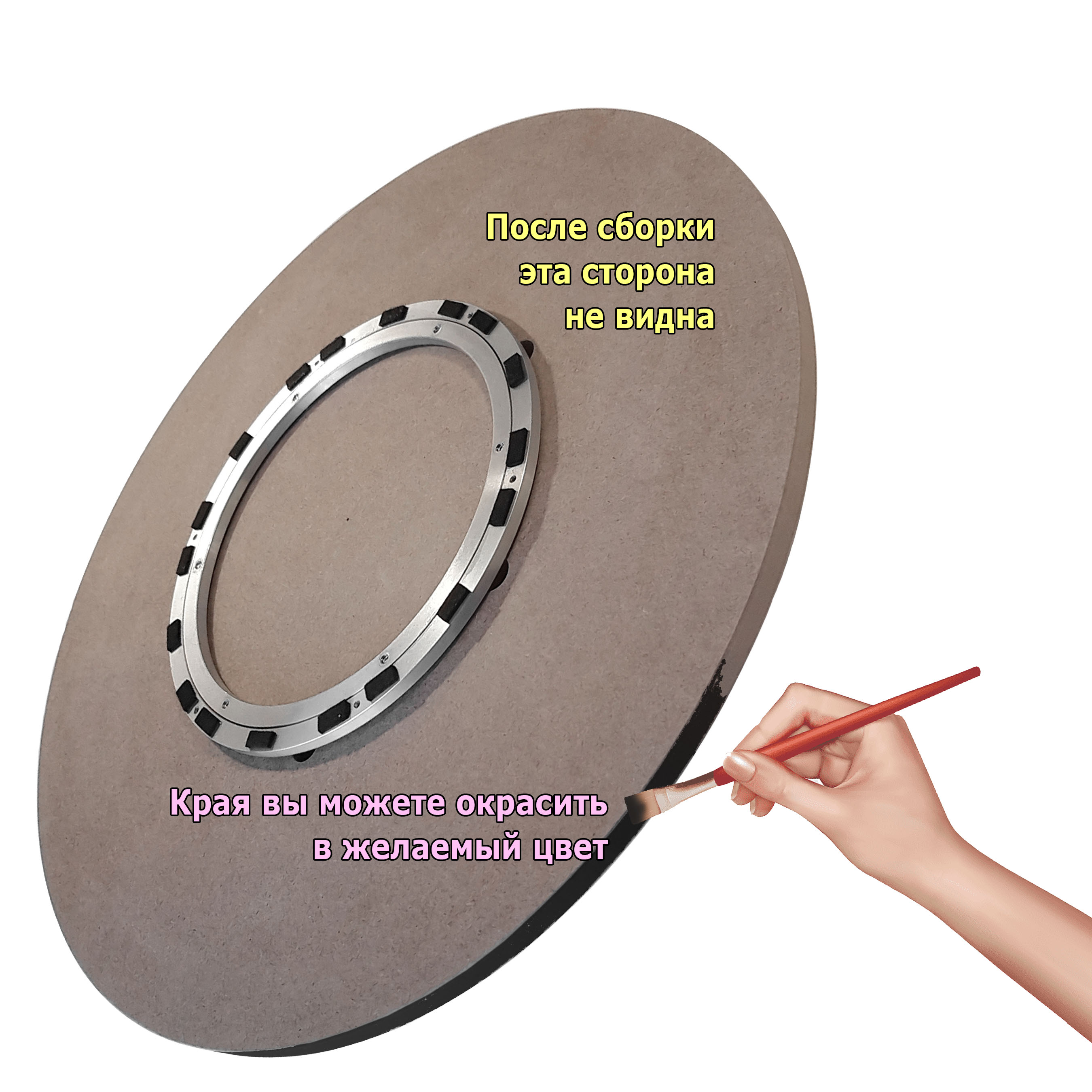 Вы можете дополнительно окрасить торец опорного круга, если возникнет необходимость. МДФ легко окрашивается.
