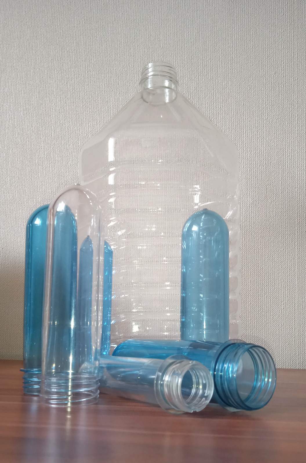 Преформы ПЭТ. Масса 64 гр., форма горловины Bericap38. Цвета прозрачный-бесцветный, прозрачный-голубой. Для изготовления ёмкостей 4-5 литров.
