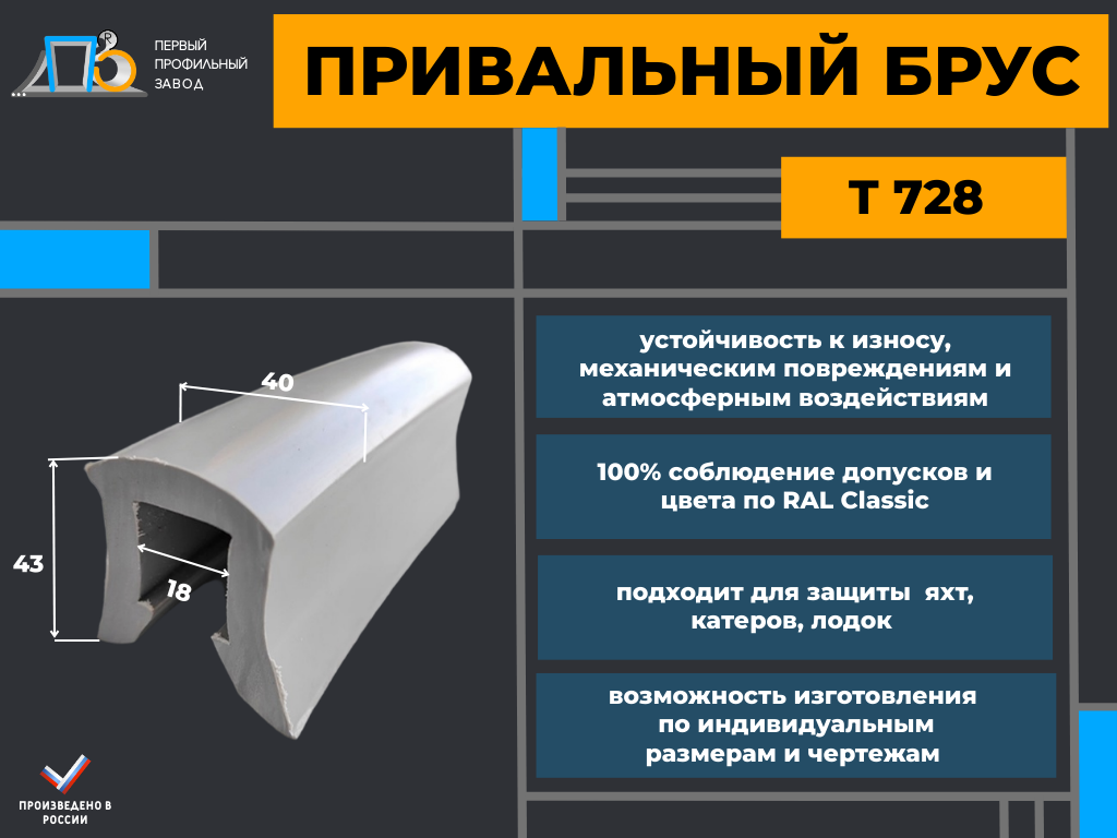Привальный брус Т 782 представляет собой уникальное решение для судов всех размеров и типов. Этот брус высотой 43мм и шириной 40мм изготовлен из качественного мягкого ПВХ, что обеспечивает его высокую прочность и устойчивость к внешним воздействиям, таким как УФ-излучение и влажность.