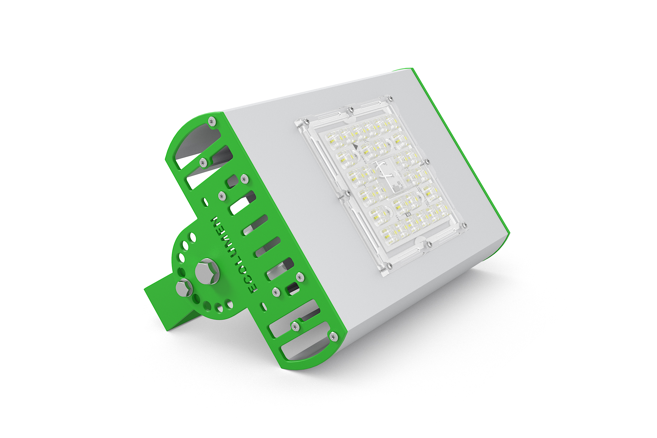 Алюминиевый корпус с дополнительными ребрами охлаждения позволяет добиться эффективного охлаждения светодиодов. Вторичная оптика (линзы) позволяет получить любую КСС и достичь необходимой освещенности при меньшей мощности светильника.