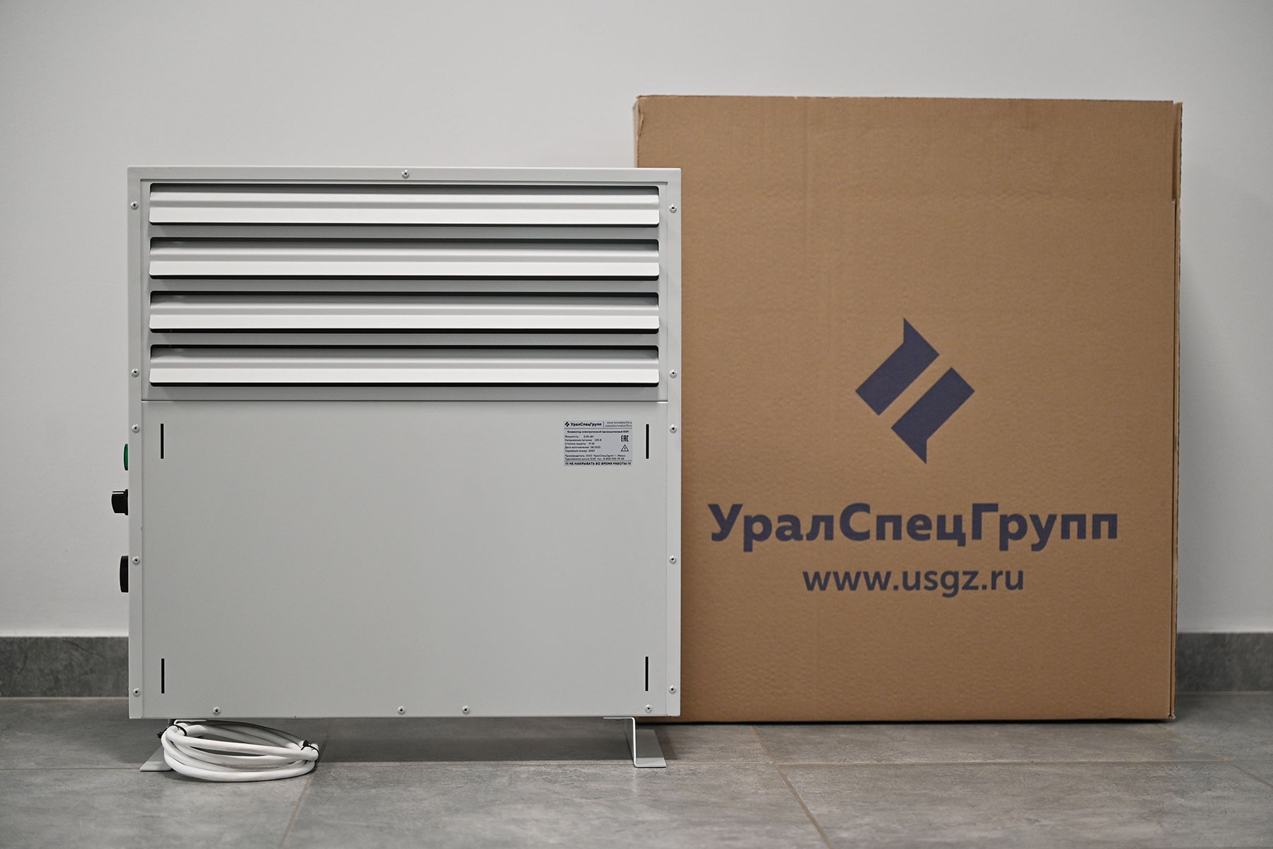 Конвектор состоит из прочного стального корпуса с полимерным покрытием RAL 7035, устойчивым к коррозии и механическим повреждениям. Внутри корпуса расположен нагревательный элемент с увеличенной поверхностью теплообмена, обеспечивающий высокую эффективность передачи тепла.