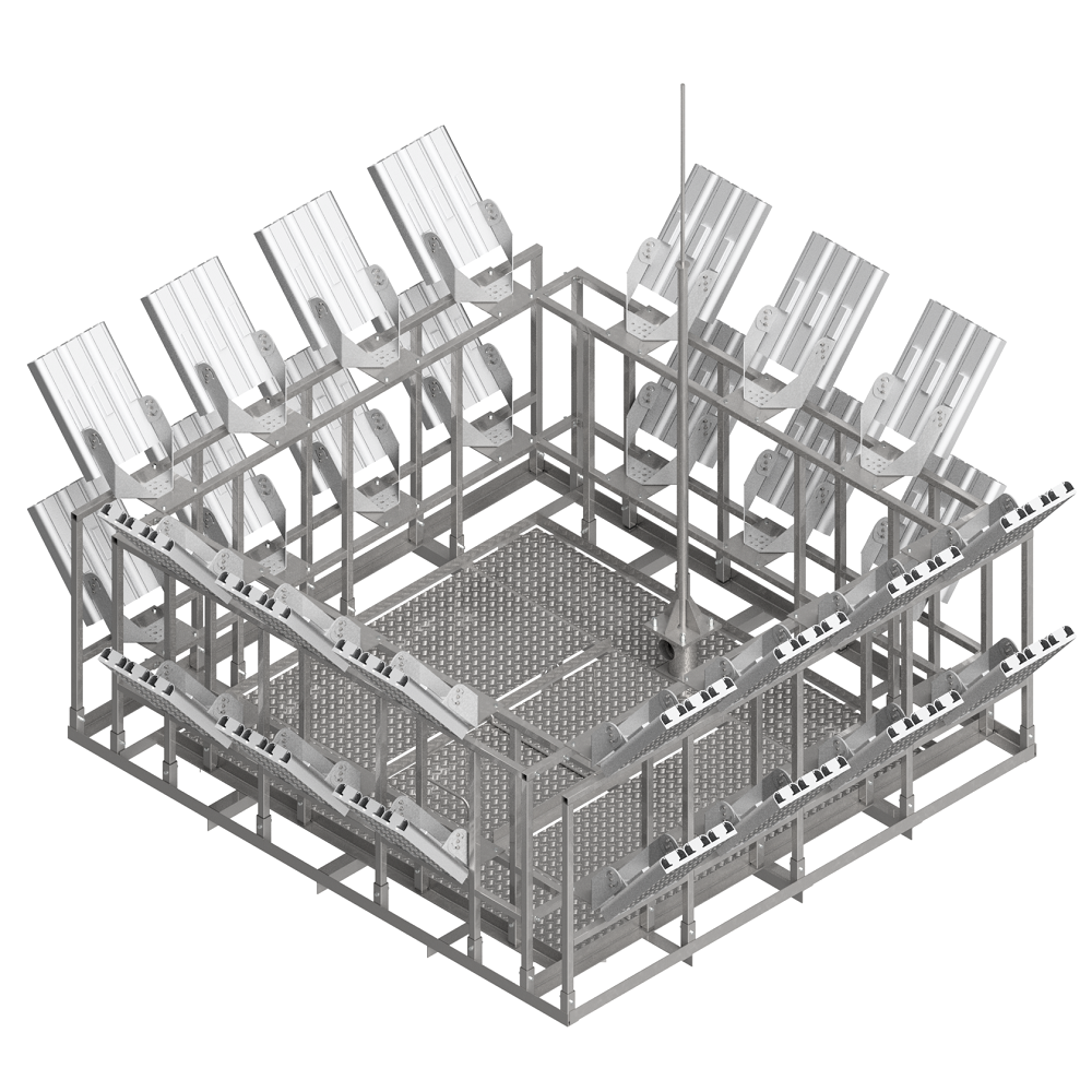- Имеет высокие показатели жёсткости, отвечает повышенным требованиям надёжности и устойчивости. Открытая конструкция мачты позволяет в режиме реального времени контролировать состояние металлоконструкций, обеспечивая бесперебойную работу всех систем, в самых суровых погодно-климатических условия.