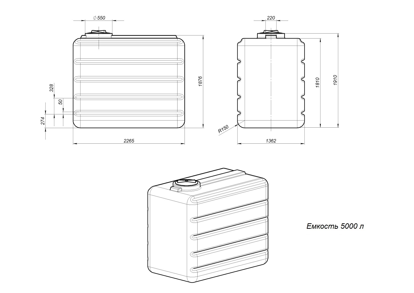 Материал позволяет использовать емкость при температуре окружающей среды -40°С до +60°С.