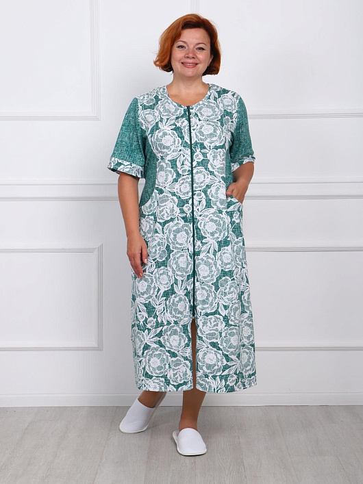 Трикотаж - Кулирка (Хлопок 100%). Это обеспечивает мягкость, комфорт и хорошую воздухопроницаемость. Женский халат имеет удлинённый крой. Застёжка на молнии обеспечивает удобство при надевании и снятии изделия. На груди расположены рельефные элементы, которые придают изделию оригинальность и индивидуальность. Внутренние карманы позволяют носит мелкие предметы, такие как телефон, всегда с собой. Рукав выполнен с манжетами. Оптовая цена действует при заказе от 10 тысяч рублей на всю корзину товаров. минимальная сумма заказа 2 тысячи рублей. Заказ размерными рядами не обязателен. Доставка: Самовывоз, почта или ТК. Доставка до терминала ТК бесплатно.