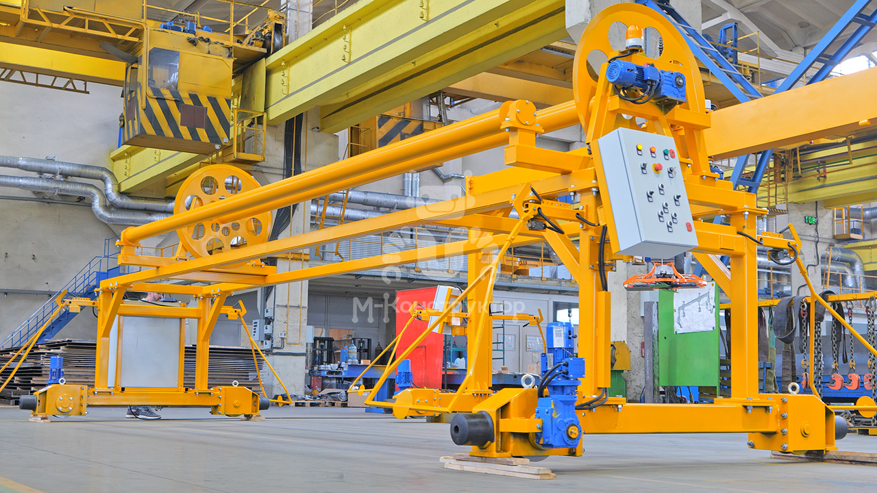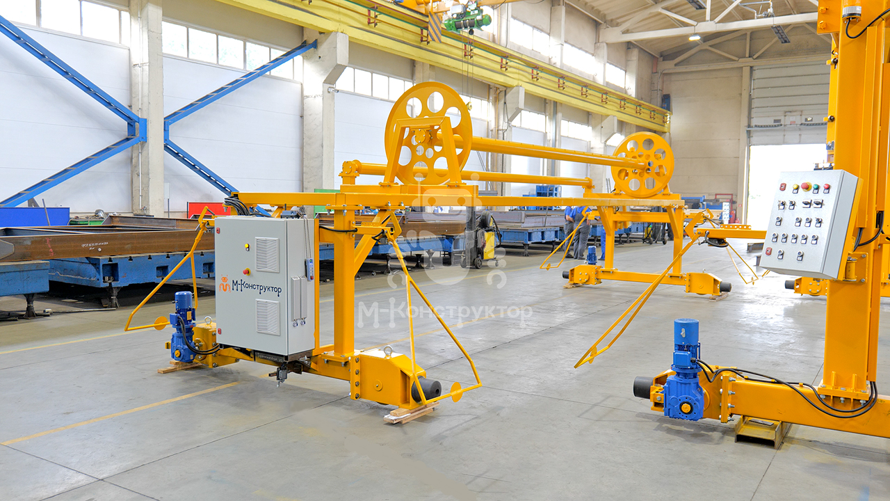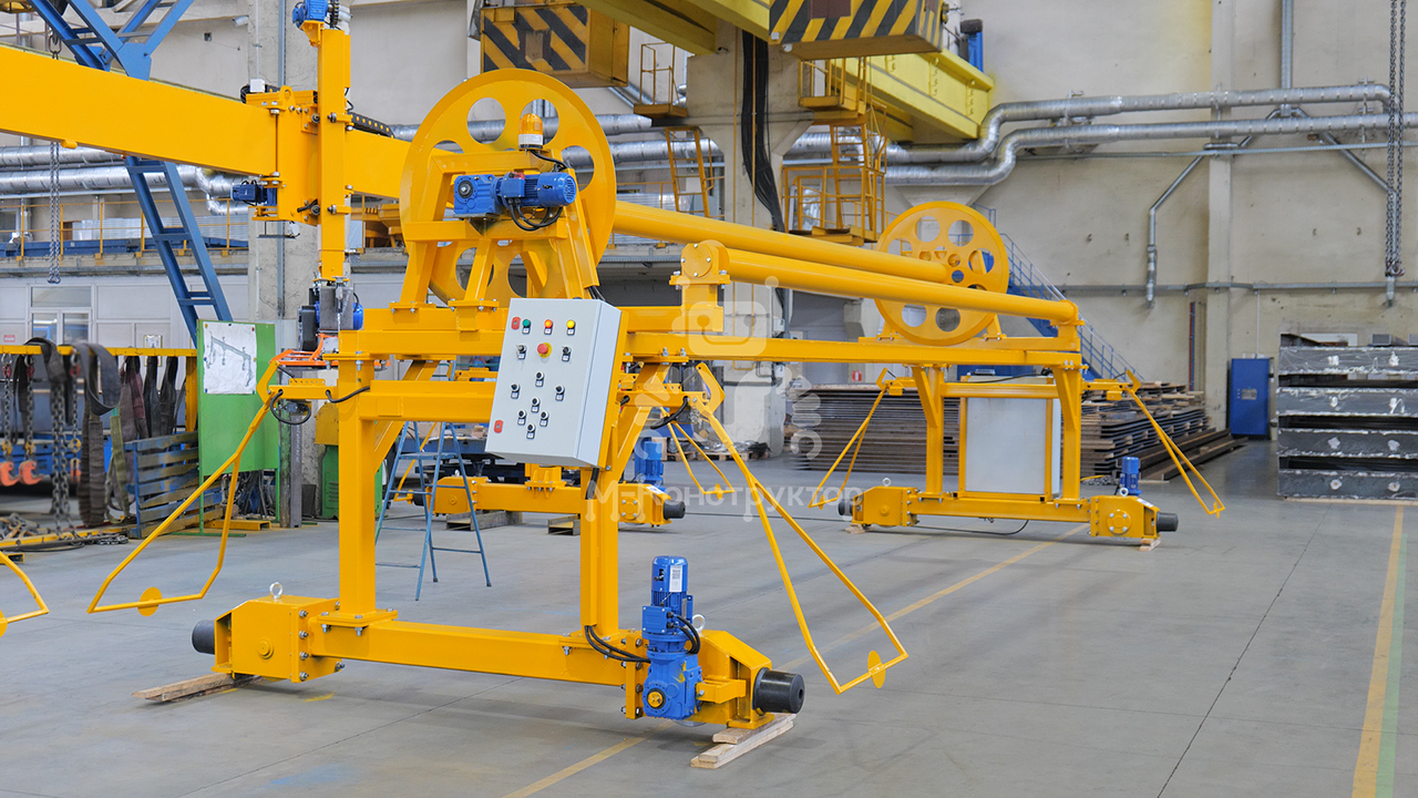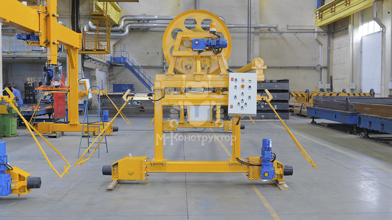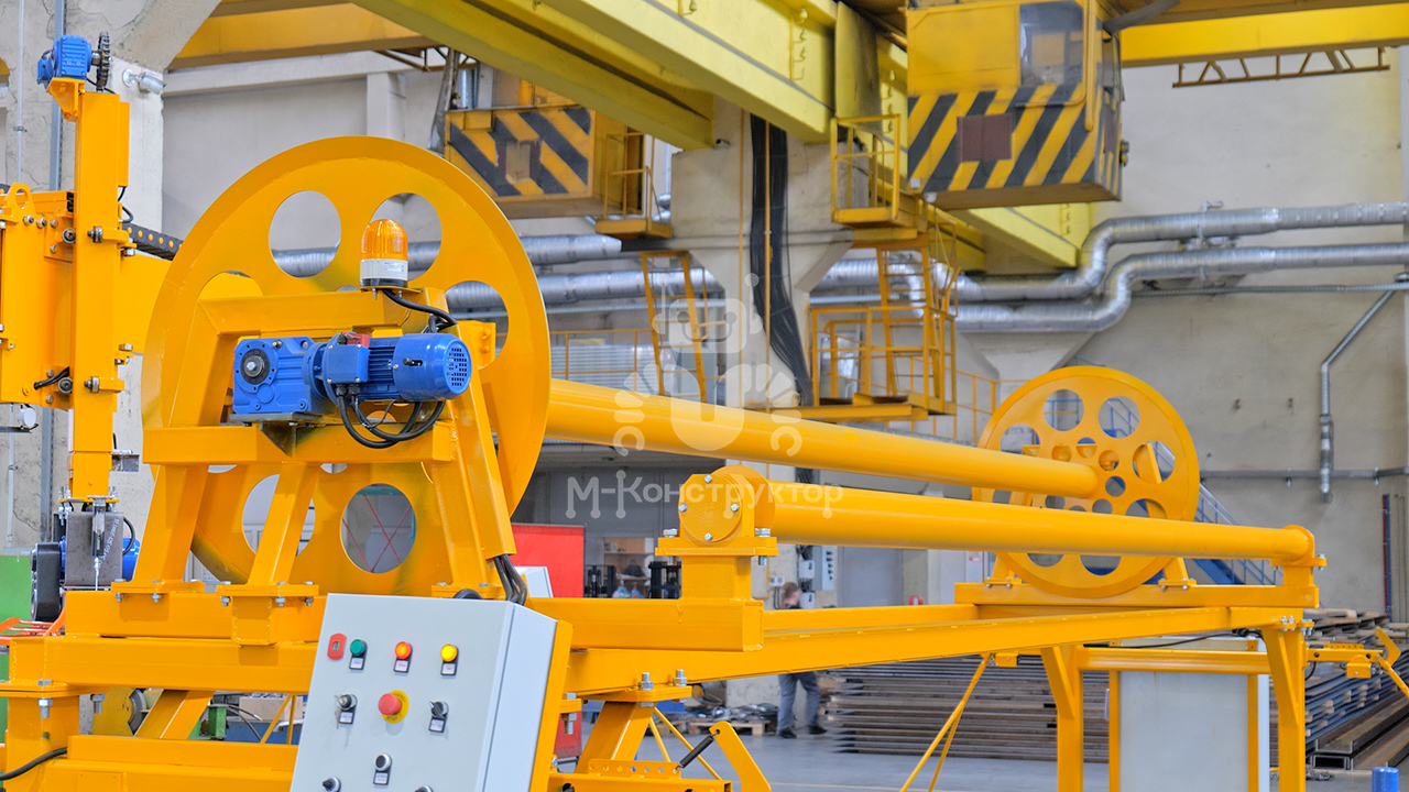 Установка обеспечивает равномерное накрывание свежезаформованных ЖБИ ПВХ-полотном, сохраняя оптимальную влажность и температуру на этапе начального твердения. Это предотвращает пересыхание бетона и снижает энергозатраты на прогрев.