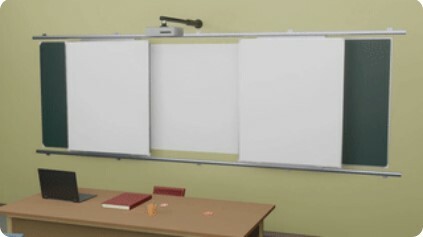 Рельсовая раздвижная система с классной и интерактивной доской в центральной части. (Доска магнитно-меловая для интерактивной доски)