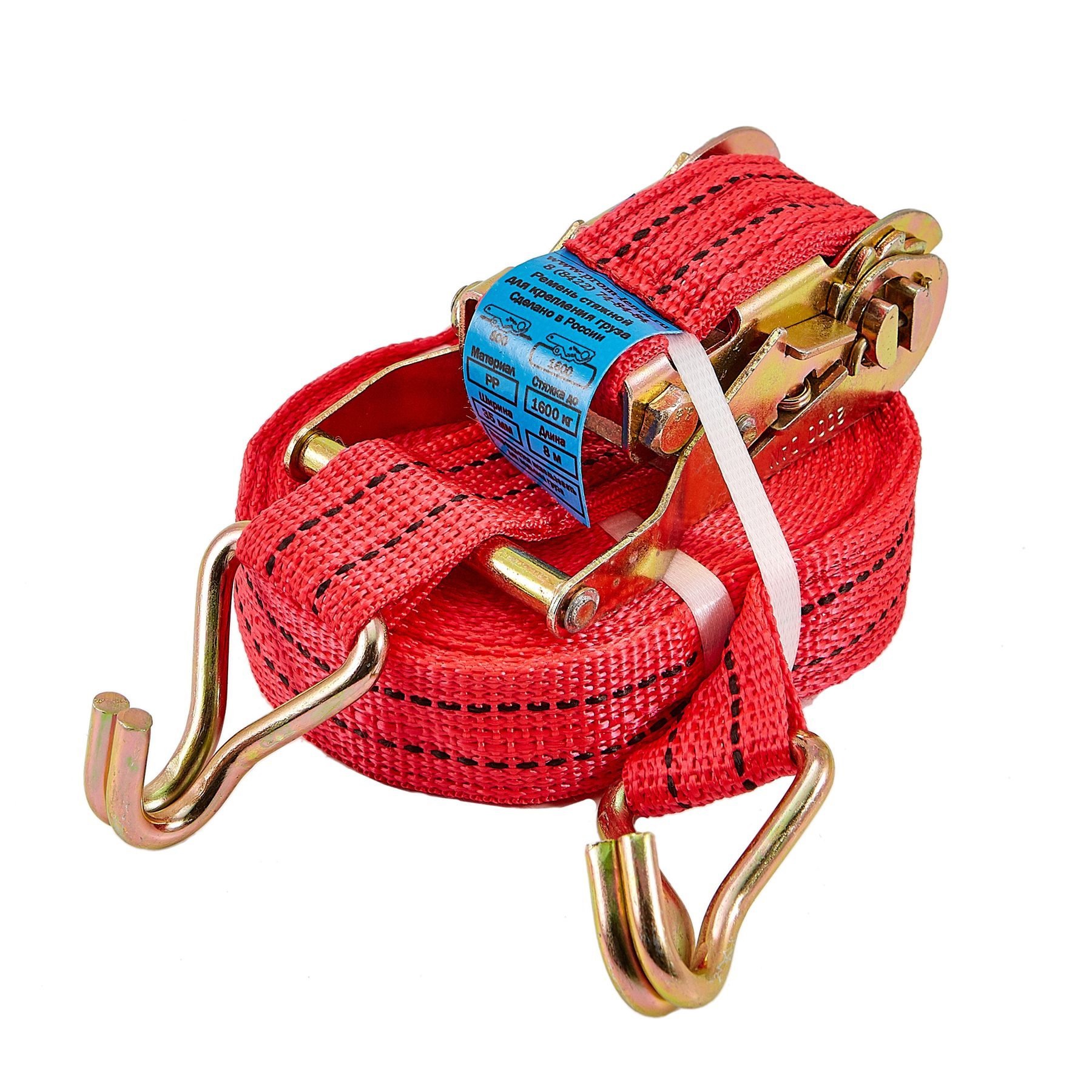 Стяжной ремень с крюками и храповым механизмом (ретчет). Рабочая нагрузка - 0.8 т. Стяжная нагрузка - 1.6 т. Длина - 4 м. Ширина ленты - 35 мм. Храповой механизм - 135 мм. Варианты исполнения, м: 2, 3, 4, 6, 8, 10, 12.