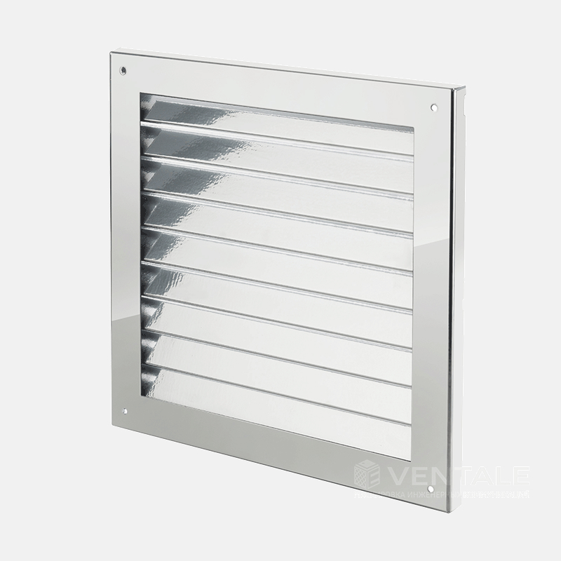 Решетка вентиляционная металлическая жалюзийная накладная Ventale из стали 0,8 мм. Особенности модели: накладная стальная решетка с полимерным покрытием. Лицевая часть состоит из параллельных ламелей (жалюзи). При ширине решетки более 500 мм применяется перемычка и дополнительный ряд ламелей. На выбор два варианта монтажа — скрытый и внешний. Оптимальная модель для изделий небольших и средних размеров. Для чего: используется для маскировки и защиты вентиляционных шахт и клапанов дымоудаления, которые необходимо эстетично скрыть. Еще одной важной функцией жалюзийной решетки является распределение воздуха для регулировки воздухообмена. Чаще всего используется внутри помещений. Из чего: изготавливается из холоднокатанной стали методом раскроя на станке лазерной резки, детали гнутся на листогибочном прессе с ЧПУ, с последующей полимерной порошковой покраской.