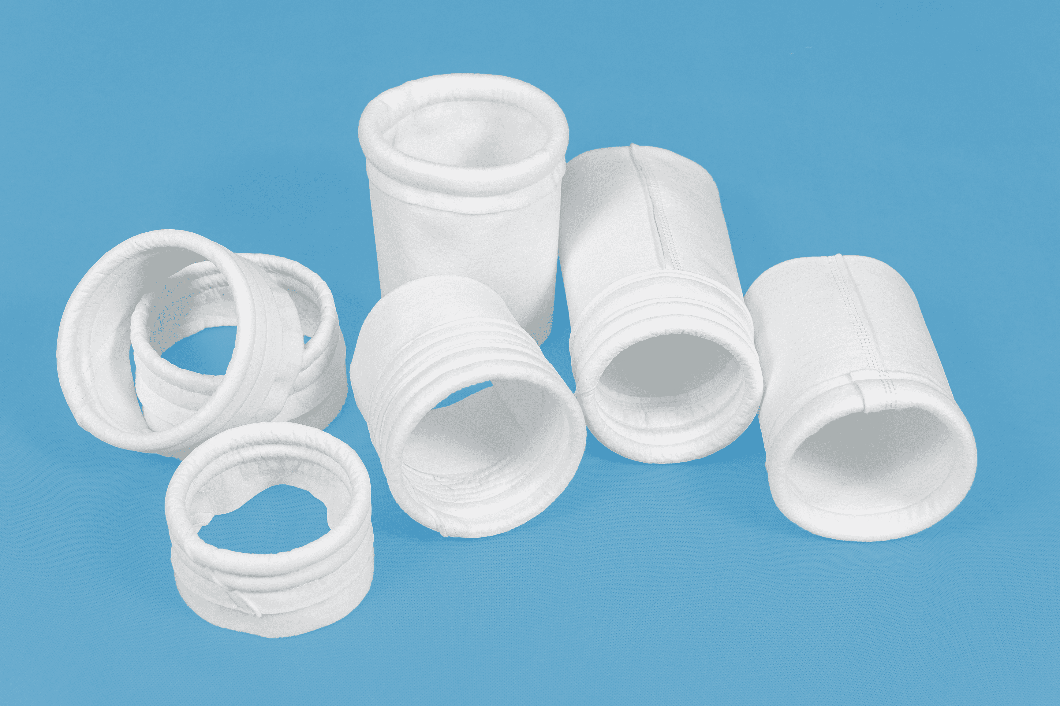 ООО Полинет производит рукавные фильтроэлементы для очистки воздуха с рабочей температурой до 150°С. При изготовлении используются мягкие пластиковые кольца (аналоги пружинных колец), кольца из нержавеющей стали, буртики различной толщины собственного производства.