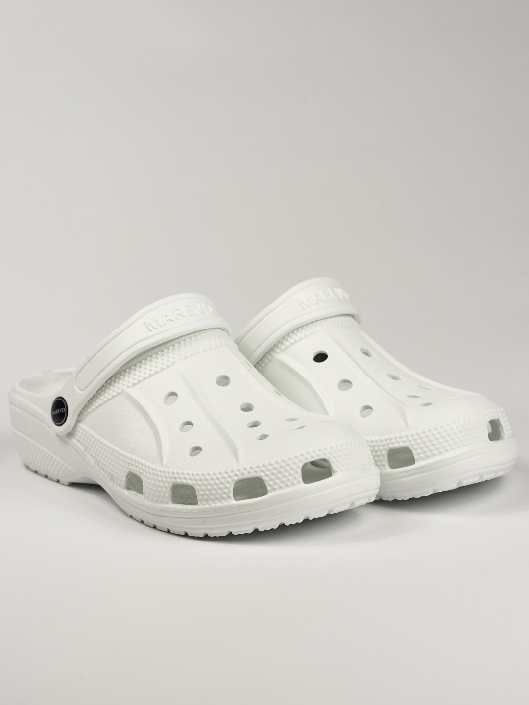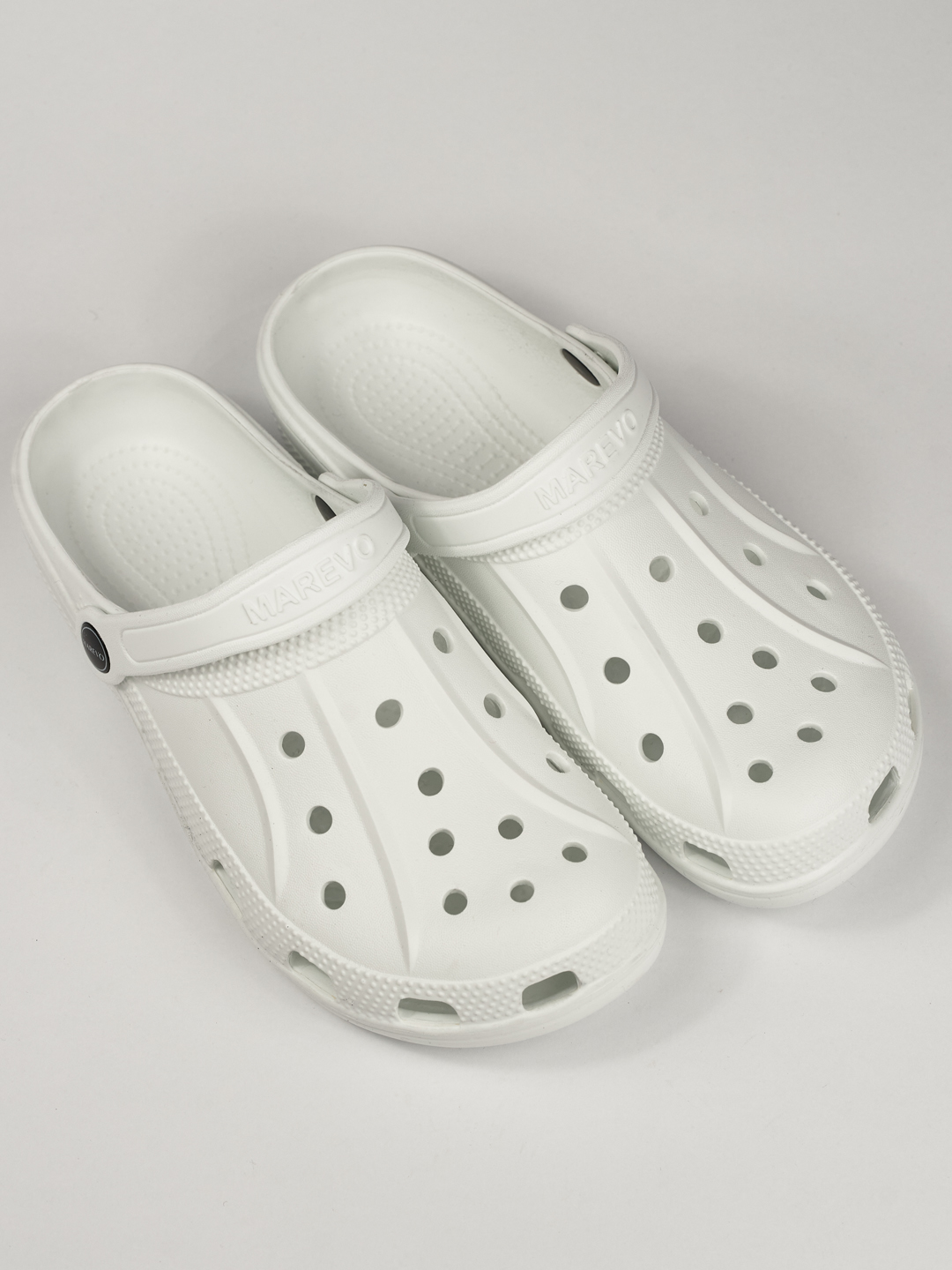 Сабо Marevo выполнены из материала ЭВА. Отверстия в верхней части обуви создают хорошую циркуляцию воздуха и помогают ноге дышать, благодаря внутренней текстуре подошвы создается массажный эффект.