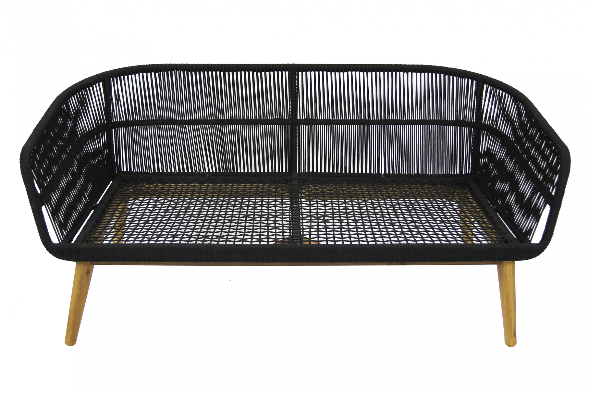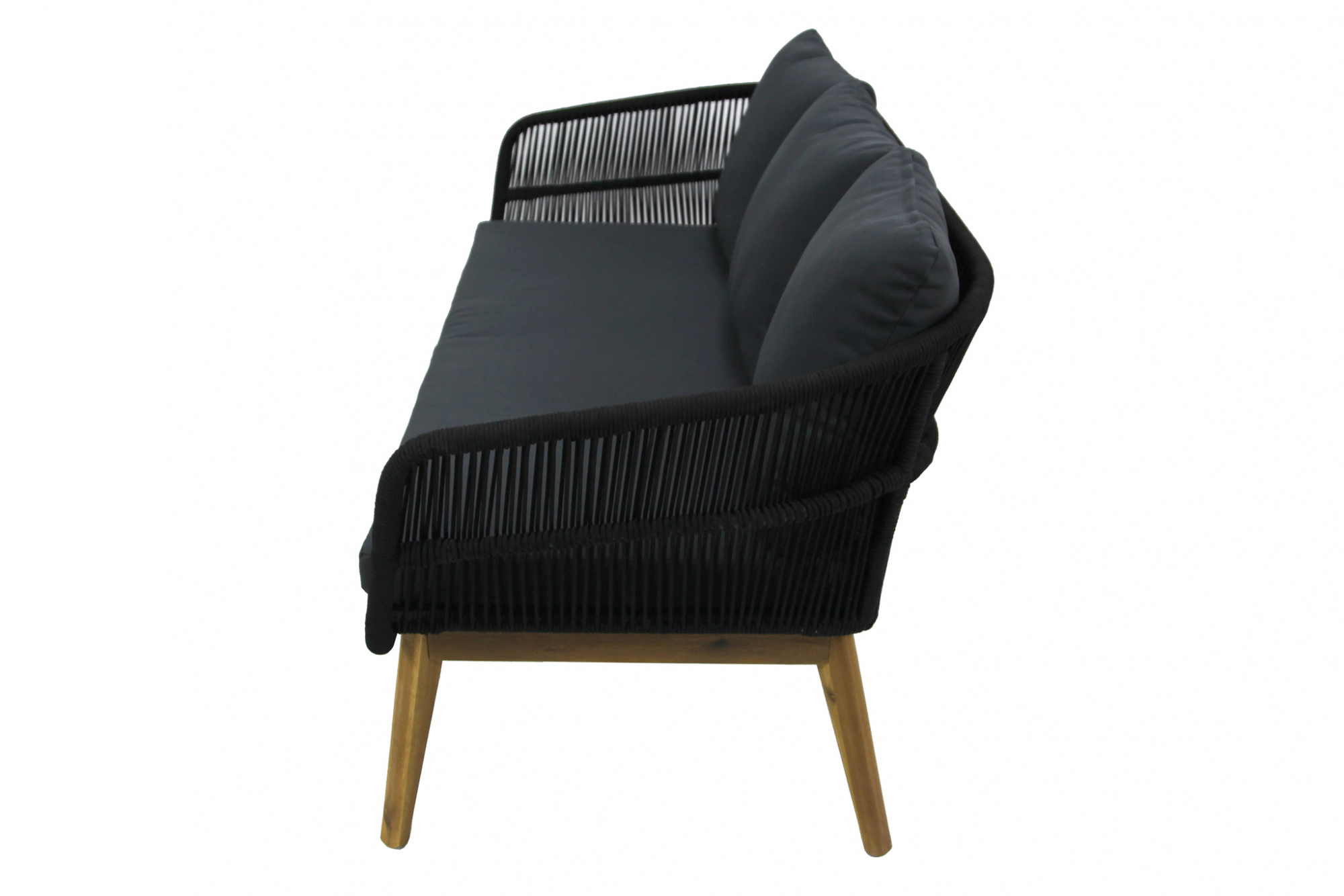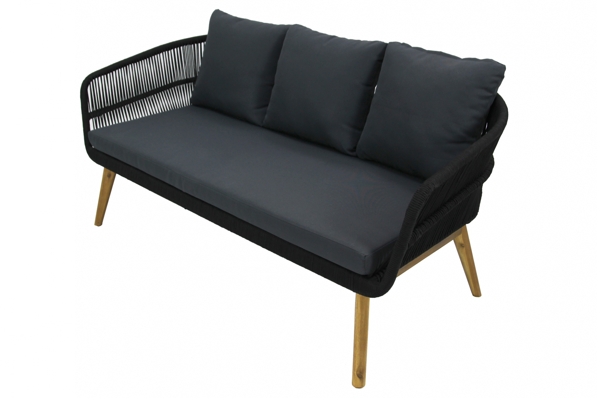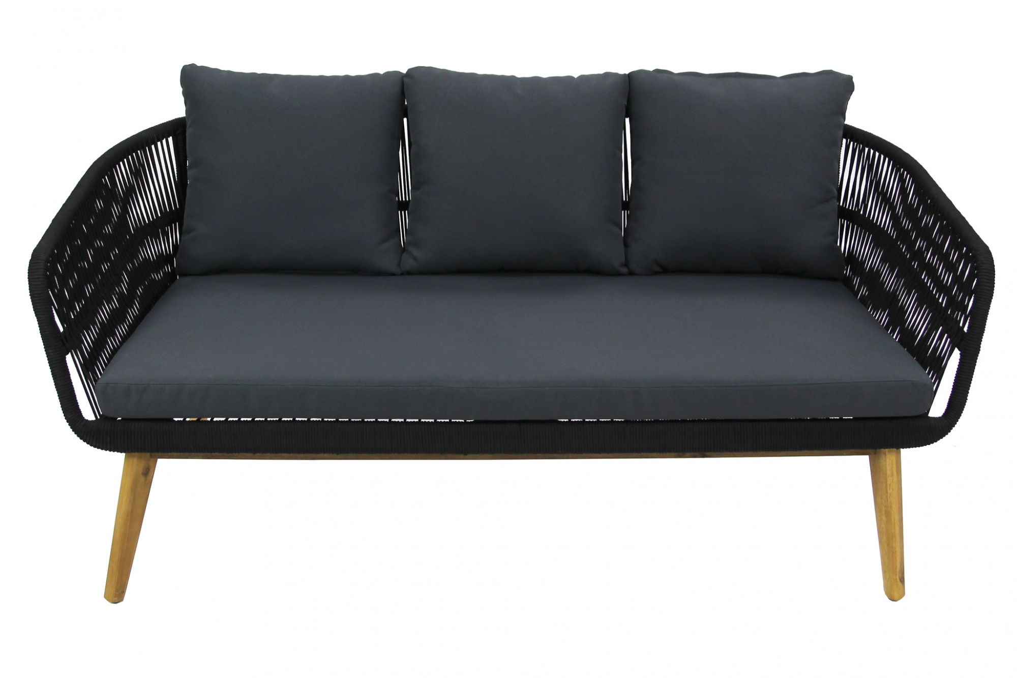 Набор «Камелия» сочетает в себе благородство натуральной акации и современные технологии плетения. Двухместный диван 76×163×82 см, парные кресла 76×73×82 см и кофейный стол 60×90×44 см образуют органичную композицию для отдыха в саду или на террасе. Теплый тон массива дерева контрастирует с графитовым оттенком синтетического жгута, создавая сбалансированный эстетический образ.
