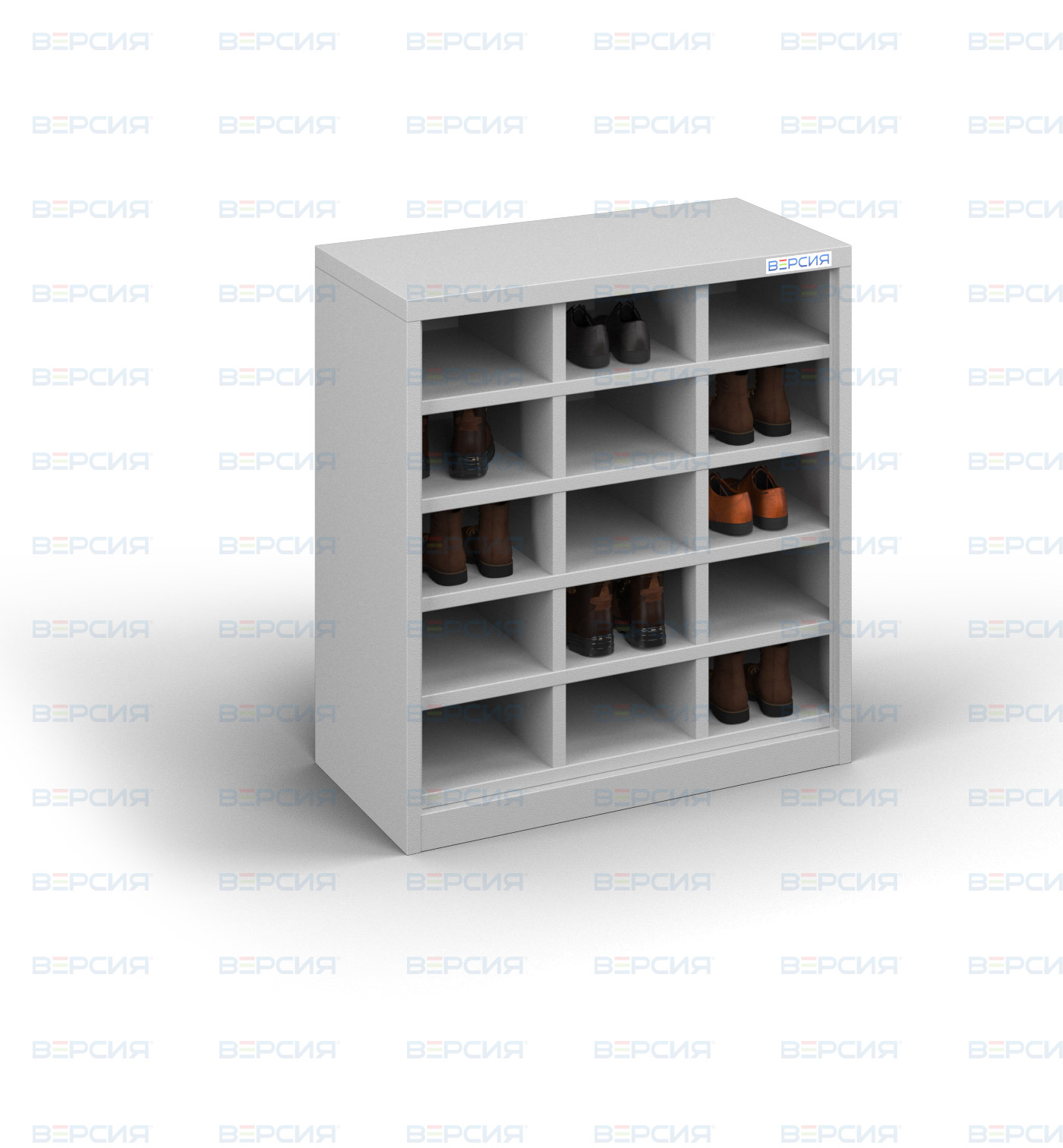 Шкаф для обуви 30 ячеек: представляет собой сварную конструкцию в виде двухстворчатого шкафа, внутри которого расположены открытые ячейки, предназначенные для хранения 1 пары обуви.