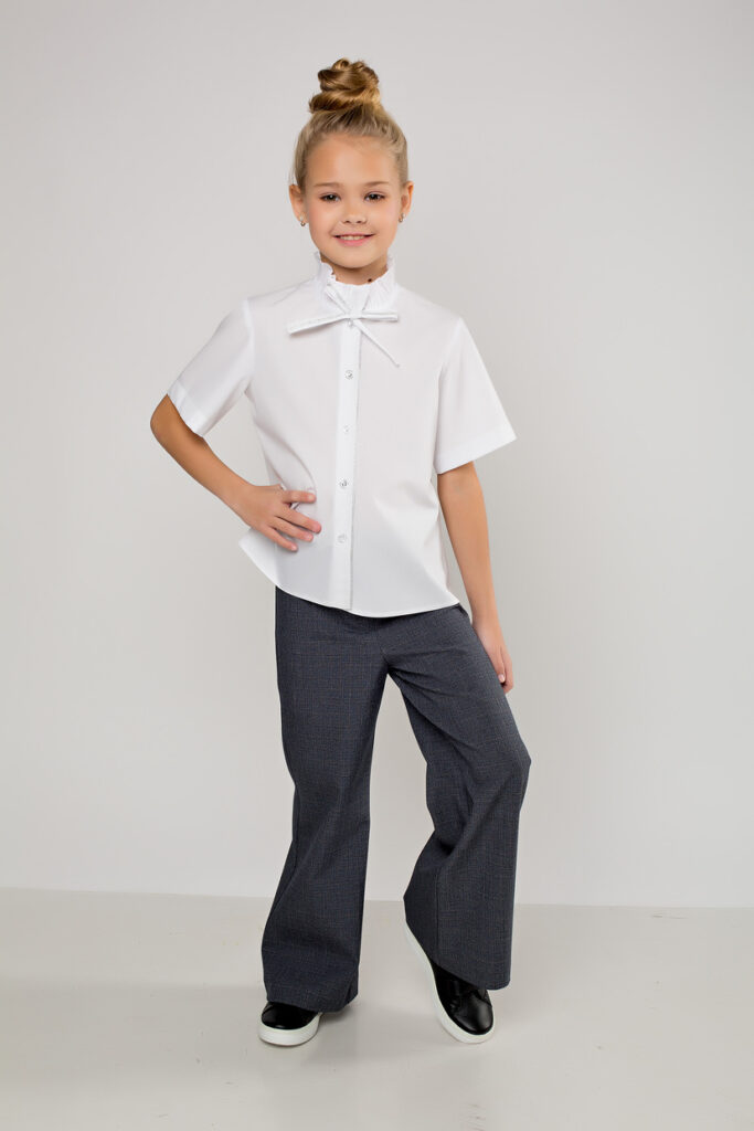 Нарядная блузка прямого силуэта - идеальная основа для школьного образа.